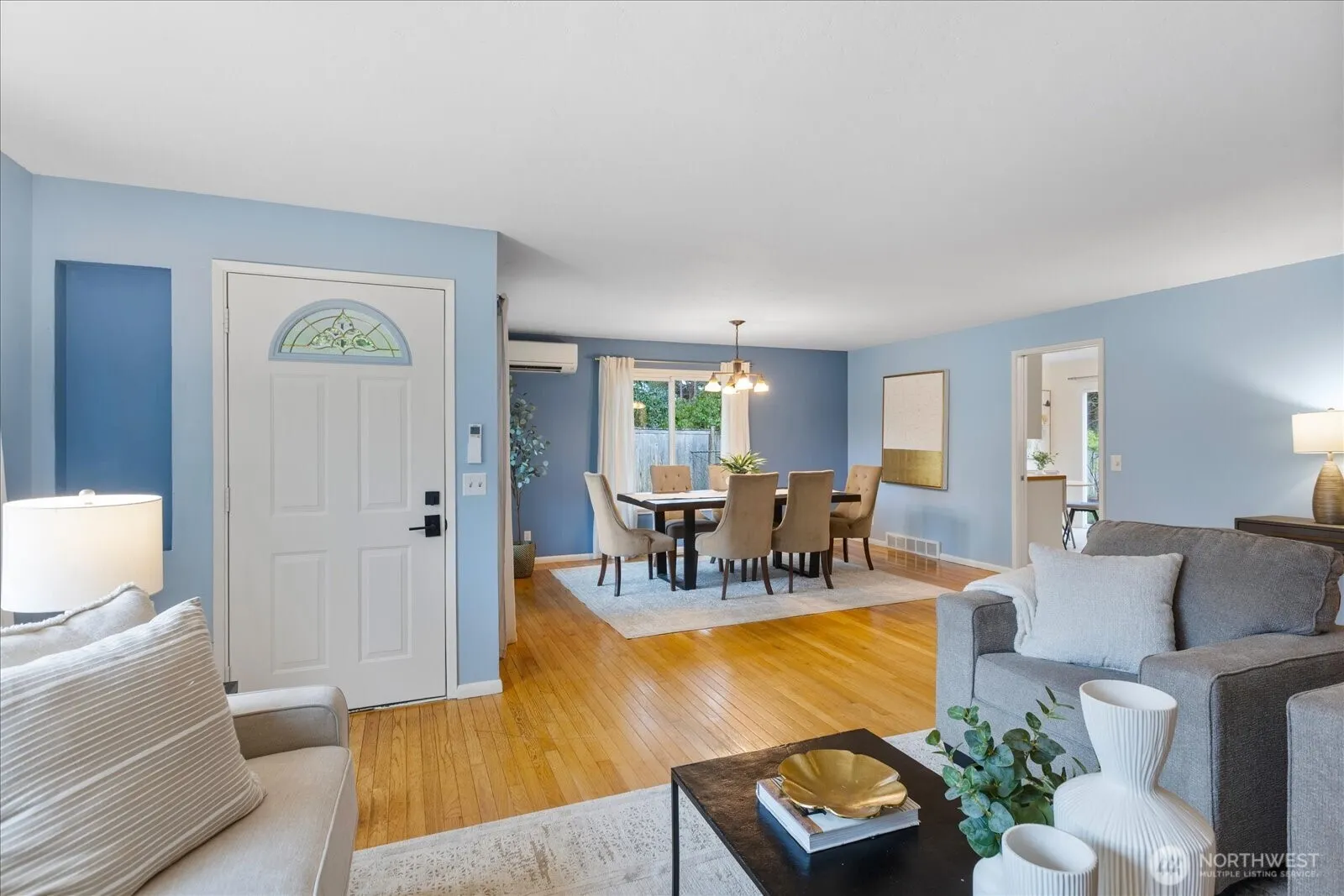 Tucked back off of a quiet street, this mid-century modern rambler offers space, privacy, and endless possibility. Set on a huge, 18,000sqft fully fenced lot surrounded by fruit trees, flowering shrubs and edible berries. This home is filled with natural light and serene views from every window. Spacious living and dining areas center around a cozy wood-burning fireplace—ideal for gathering or quiet evenings in. The refreshed kitchen features new LVT flooring, all new appliances, and space for a breakfast nook overlooking the peaceful patio and visiting wildlife. Enjoy year-round comfort with new mini-splits throughout providing efficient heating and cooling from room to room. Newly installed TPO (Thermoplastic Polyolefin) roof complete with added insulation for peace of mind. With its NR3 zoning, the expansive lot offers exciting DADU or future build potential (buyer to verify). Large shop/studio with electric heat and a two-car garage add versatility for hobbies, storage, or creative space. Conveniently located near sought-after Boeing Creek Park and Sunset Park and within the Shoreline School District. A rare opportunity to live, expand, and create your vision.