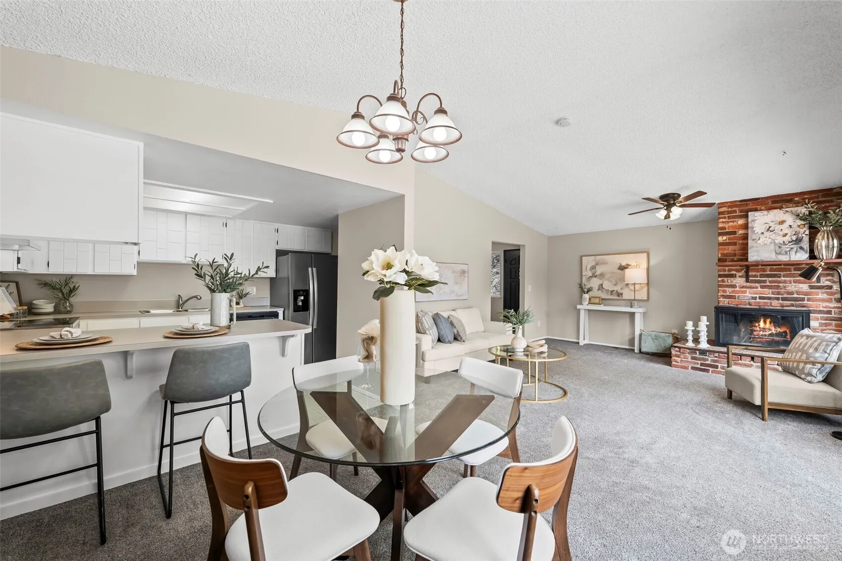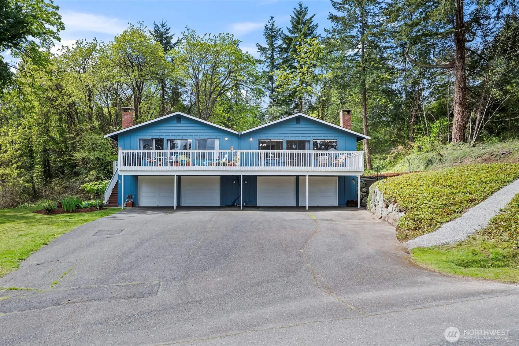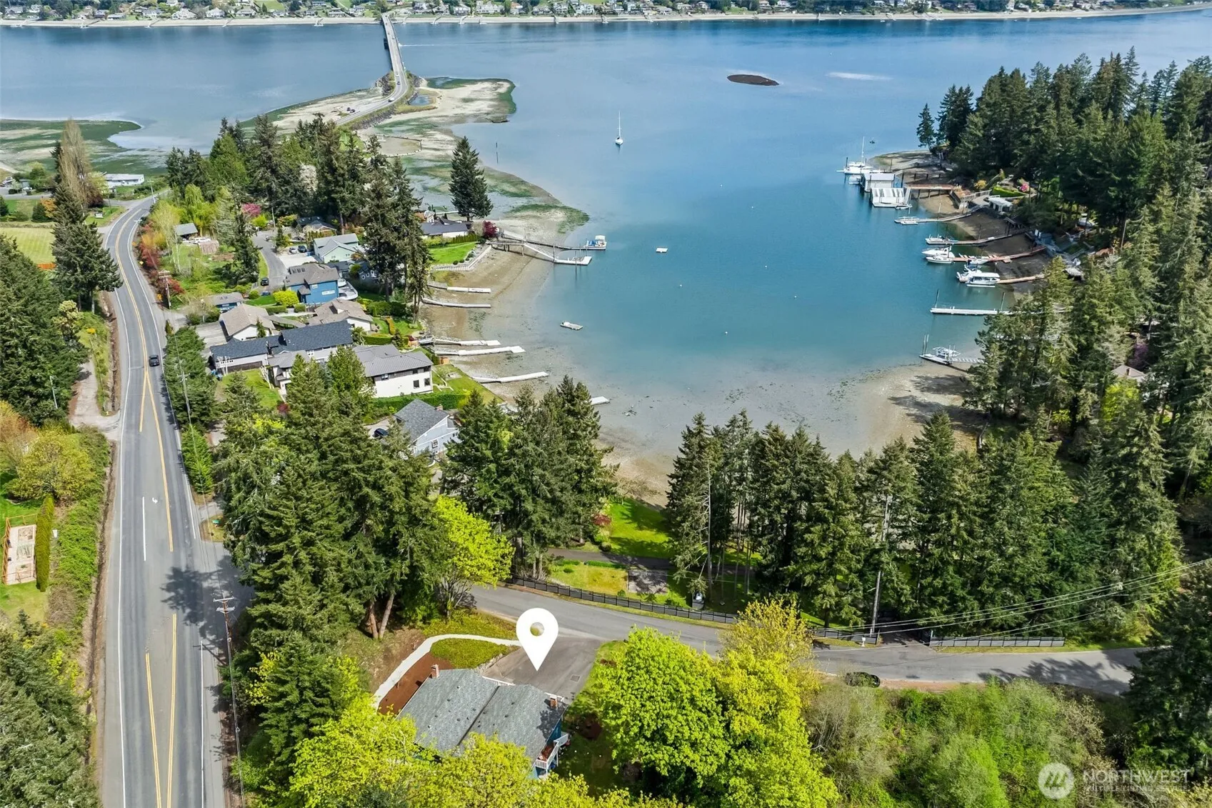 Not just one but TWO Fox Island VIEW homes with more than 2200 sf of garage and storage on a usable 1+ acre lot just across the bridge. So many possibilities are at your fingertips – Live in one, pay the mortgage with the other, take advantage of the space to park all the toys and RV, have a multigenerational compound near the water, or get creative and modify it into one. Each side features a great room with big view windows, vaulted ceilings and sliding doors to the newly resurfaced deck to take in the sunrises, the vistas of Honeymoon Bay and all the activity in Hale Passage. They also each include 2 spacious bedrooms (one with a door to the full bath), a stacked washer/dryer in the hall, and a compact open kitchen on the main level. 298 was renovated in 2016 with new cabinets, granite countertops, new flooring, canned lighting, and resurfaced ceilings (no popcorn). It’s currently rented through July 2027 at $1950 per month (under market). 296 is refreshed and ready for quick move in. The huge garage/flex spaces below are a blank slate (or a dream come true for the garage lover) including 220 power. A new 4 bedroom septic installed in 2015 and a small 2nd parcel complete this exciting package!