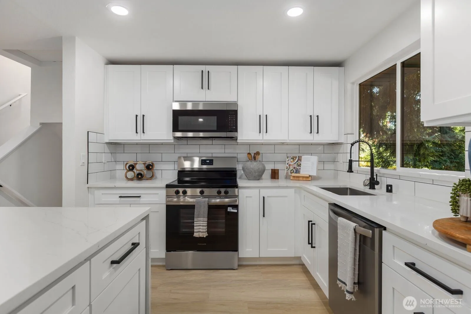 Fully renovated Bothell stunner with incredible curb appeal. Featuring new garage doors, siding, windows, a brand new roof, and professionally designed landscaping, this home makes a statement from the moment you arrive. Step inside to a wide open living space with quartz countertops, new cabinetry, and an oversized waterfall island. A stylish fireplace anchors the main living area, creating a warm and modern feel.The Upstairs offers 3 bedrooms and 2 fully remodeled bathrooms, including a beautifully updated primary suite with designer tile and finishes. The lower level provides a second living space, 2 additional bedrooms, and a full bath. Perfect for guests or multi-generational living.Extensive upgrades include a brand new roof, new paint, carpet, LVP flooring, millwork, deck, fence, tile, appliances, and fully refreshed landscaping. Situated on a corner lot of over a quarter acre and located minutes from highways, shopping, and all within the highly rated Northshore School District. This truly is A rare combination of space, luxury, and location. Fully Pre-inspected to give you confidence from the start.