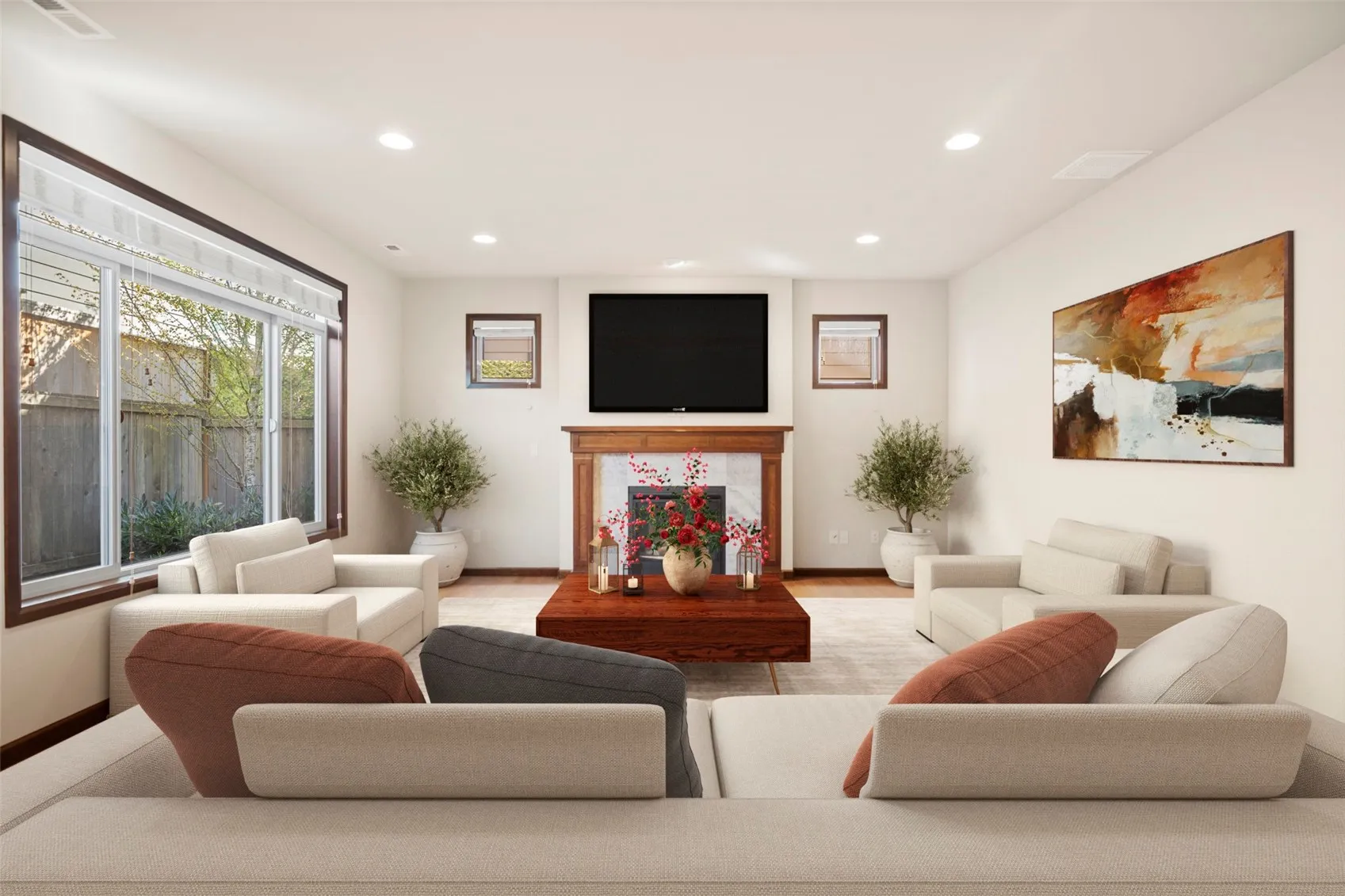 2017 Built Turn-Key home in a highly desirable central location featuring 9-foot ceilings on the main floor, rich hardwood flooring throughout, and an open-concept layout ideal for modern living. The spacious kitchen boasts a large pantry, custom island, slab granite countertops, and stainless steel appliances, flowing seamlessly into the inviting living area with a cozy gas fireplace and elegant granite surround. Upstairs, the sophisticated primary suite offers cathedral ceilings, a generous walk-in closet, and a luxurious 5-piece ensuite bath with marble countertops and a marble slab shower. Heat Pump installed for hot summer days. Enjoy outdoor living with fully fenced yards, perfect for privacy, pets, or play, all conveniently located near I-5 and I-405 for easy commuting and within the highly regarded Edmonds School District.