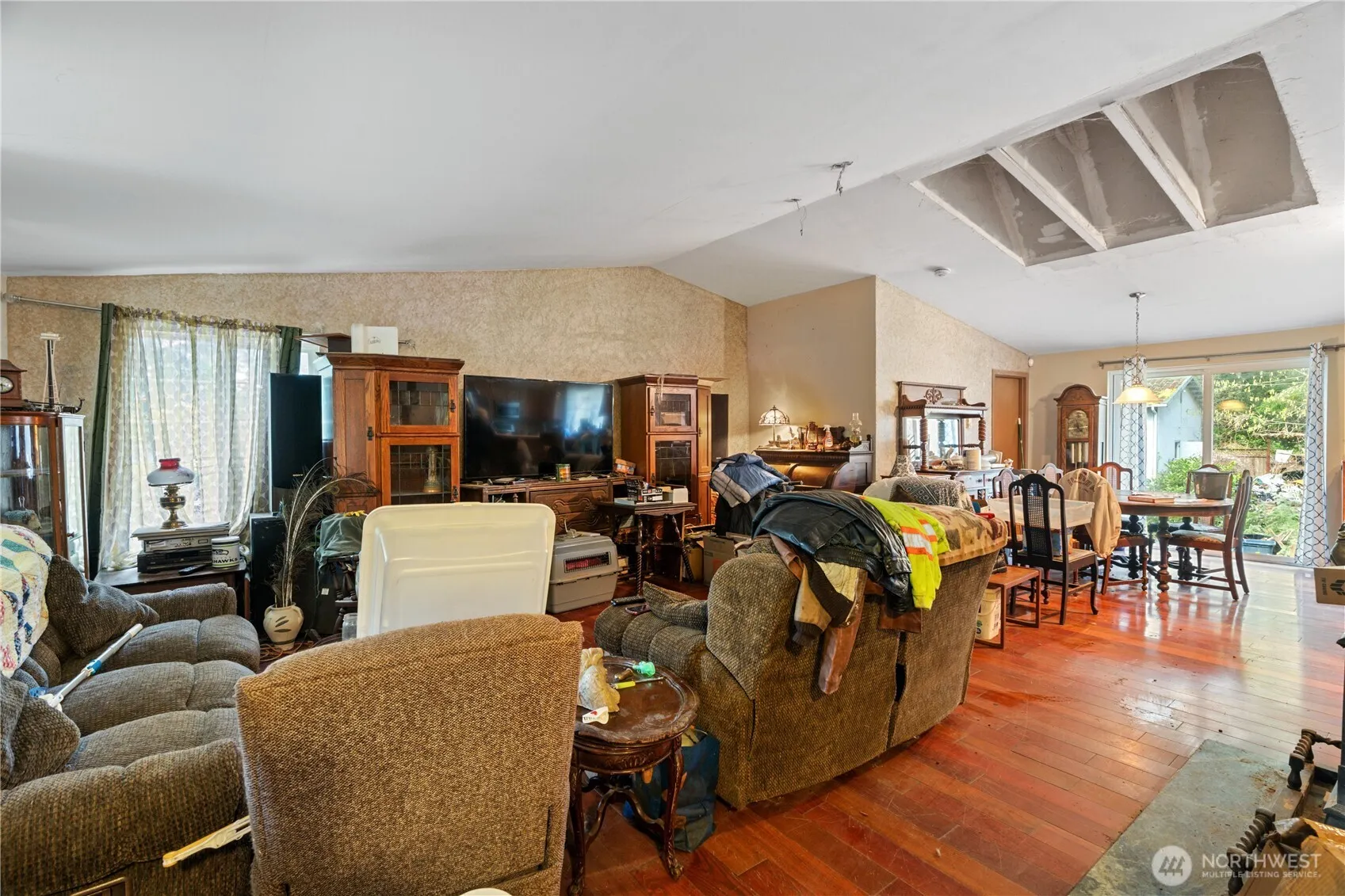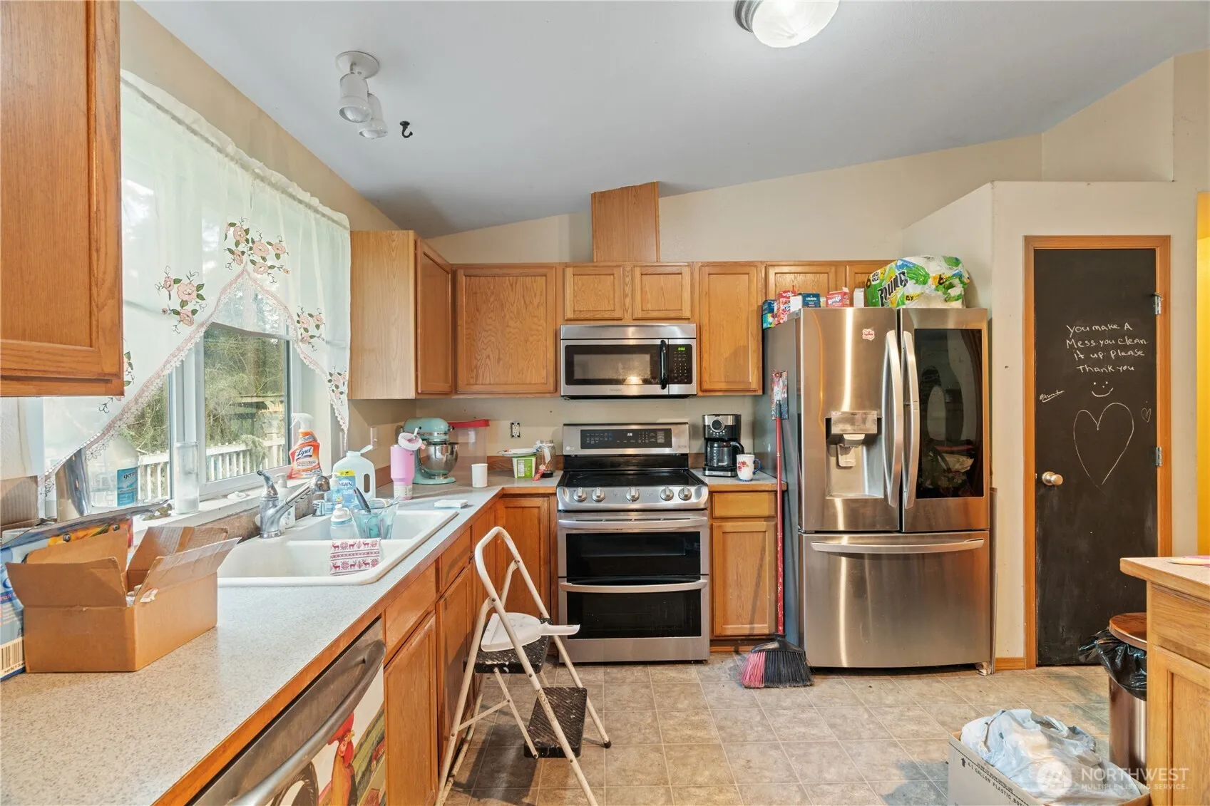 4 bedroom/2bath house built in 2008 with 4 bay garage on 5 acres- priced $15,000 under recent appraised value- sellers very motivated and need this to move quick! Level parcel with some large trees and gated property. Space for additional shops or garages. Items in garage and around property are in the process of being cleared, look past that to the possibilities of owning 5 acres in this great location.