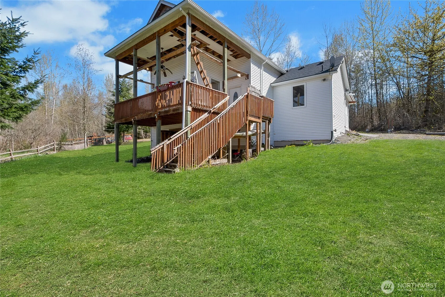 Private 5-Acre Retreat with Charm, Light, and Endless PossibilitiesCome home today and enjoy the peace and privacy of this beautiful stick-built home, perfectly situated on nearly 5 acres of serene land. This inviting property features 2 spacious bedrooms and 2 full five-piece bathrooms, offering both comfort and functionality. The kitchen is designed to impress, with stunning countertops, a full backsplash, and stainless steel appliances—all included. This is far from a cookie-cutter home; it’s filled with character, charm, and an abundance of natural light throughout.Relax and unwind on the enclosed front porch, or step out back to a generous deck that overlooks your expansive property—perfect for entertaining or simply enjoying the view. Outdoor enthusiasts will appreciate the existing RV hookups with power already in place, as well as a large greenhouse ready for your gardening ambitions.Year-round comfort is ensured with a ductless mini-split system, keeping you cool in the summer and warm in the winter.If you’re looking for space, privacy, and a home with personality, this one is a must-see.