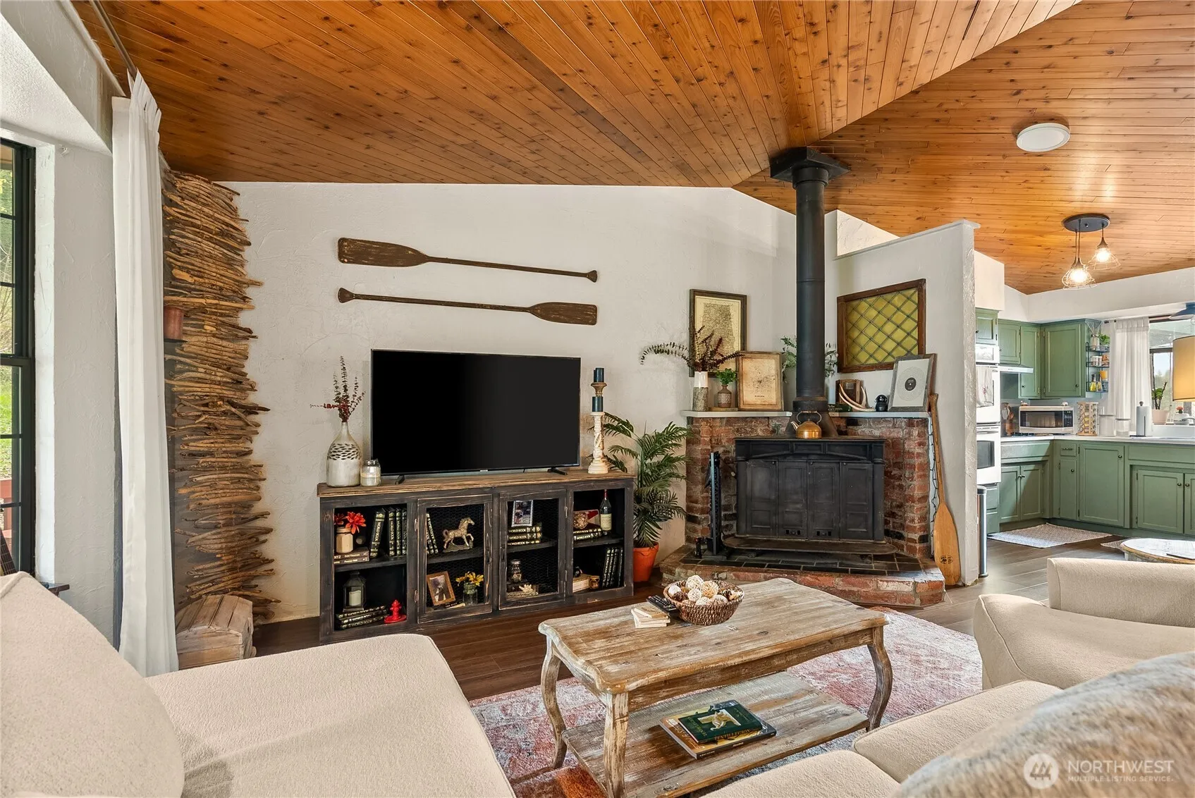 Private country home is tucked at the end of a quiet dead-end road. This oasis is surrounded by open space and mature fruit trees, (Apple, Pear, Cherry, Plum and Huckleberries. This property offers room to breathe and a quieter pace of life. With 3 bedrooms, 1.5 baths, and +/-1,770 square feet, the home features vaulted ceilings that create an open feel in the main living area. The living room flows into the kitchen and dining space, making everyday living and gatherings feel connected and comfortable. A wood-burning fireplace adds warmth and character on the main level, while the downstairs family area offers additional flexible living space with its own wood-burning fireplace, ideal for a second lounge, media area, or home office setup. French doors lead to a wrap-around deck and gazebo, providing a great space for outdoor meals or relaxing evenings overlooking your private setting. The usable +/- 2.04 acres offers room for gardening, animals, equipment, or future projects. A spacious +/- 1728 sq ft shop provides room for up to 8 vehicles, storage, and hobbies! Additional outbuildings include a barn, tool shed, firewood shed, and chicken coop. This property is private, functional, and ready for country living, yet 22 minutes to East Gate JBLM or 28-32 minutes to Madigan.