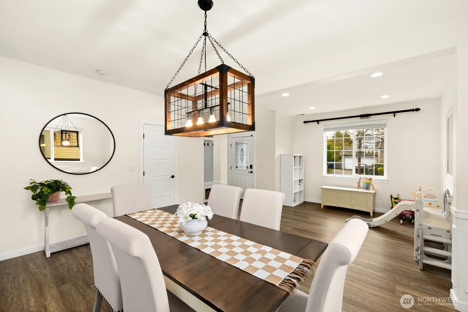 Beautifully updated and thoughtfully designed, this home offers exceptional flexibility, space, and outdoor living. The main floor features soaring 9’ ceilings, an open and inviting floor plan, updated interior paint, smart home features, and a rare second primary suite, perfect for guests or multi-generational living. Upstairs, enjoy a spacious family room ideal for relaxing or entertaining, along with updated bathrooms and gorgeous, unique design touches that add warmth and character throughout the home. In addition to the 5 bedrooms, there are 2 additional flex spaces that can be used as an office, family room, extra bedroom, etc. The exterior is just as impressive. A charming white picket fence frames the front yard, while parking is abundant with four off-street spaces plus a 3-car garage with additional storage. Step into the backyard oasis designed for both function and fun, custom lighting, a cozy fire pit, and a one-of-a-kind BBQ shack that can also serve as a workshop, hobby space, or creative retreat. This home seamlessly blends everyday comfort with standout features inside and out. Amazing location with easy access to the freeway and all that downtown Sumner has to offer. Don’t miss the epic Mt Rainier views from the downstairs sitting room, upstairs bedrooms and additional family room. Pre-inspected and rate buy down available.
