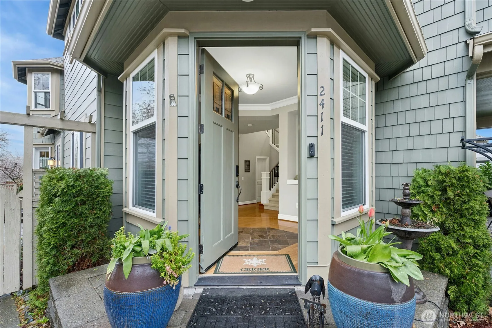 New England style craftsman and former Specialized model home located on prime 30th Ave corner lot. Showcasing exceptional architecture and high-end finish work, this stunning residence welcomes with a formal rotunda foyer creating an impressive entry. The 10′ ceiling design features an open main plan including formal dining and living rooms with double sets of French doors opening to covered patio – ideal for both everyday living and entertaining. A chef’s kitchen with beautiful pine cabinetry, oak hardwood flooring, an expansive center island, and an inviting breakfast nook, also opens to the family room. A grand staircase leads to upstairs retreating to a private primary suite complete with sitting room, primary bath and walk-in closet. Upstairs finds a total of 4 bedrooms, with second bedroom ensuite, plus 3 full bathrooms and laundry room. The versatile bonus room with views could be used as a 4th bedroom with the Jack-and-Jill bathroom. Additional highlights include extensive millwork, custom inlays, wrought iron railings, expansive windows, vaulted ceilings, and built-in cabinetry. The exterior has been newly repainted and this home has been well maintained. Enjoy beautiful territorial views, a spacious two-car garage offering high ceiling height for future loft and/or storage capabilities. Steller Issaquah Highlands location on quiet street, yet close to parks, Grand Ridge Elementary and much more.