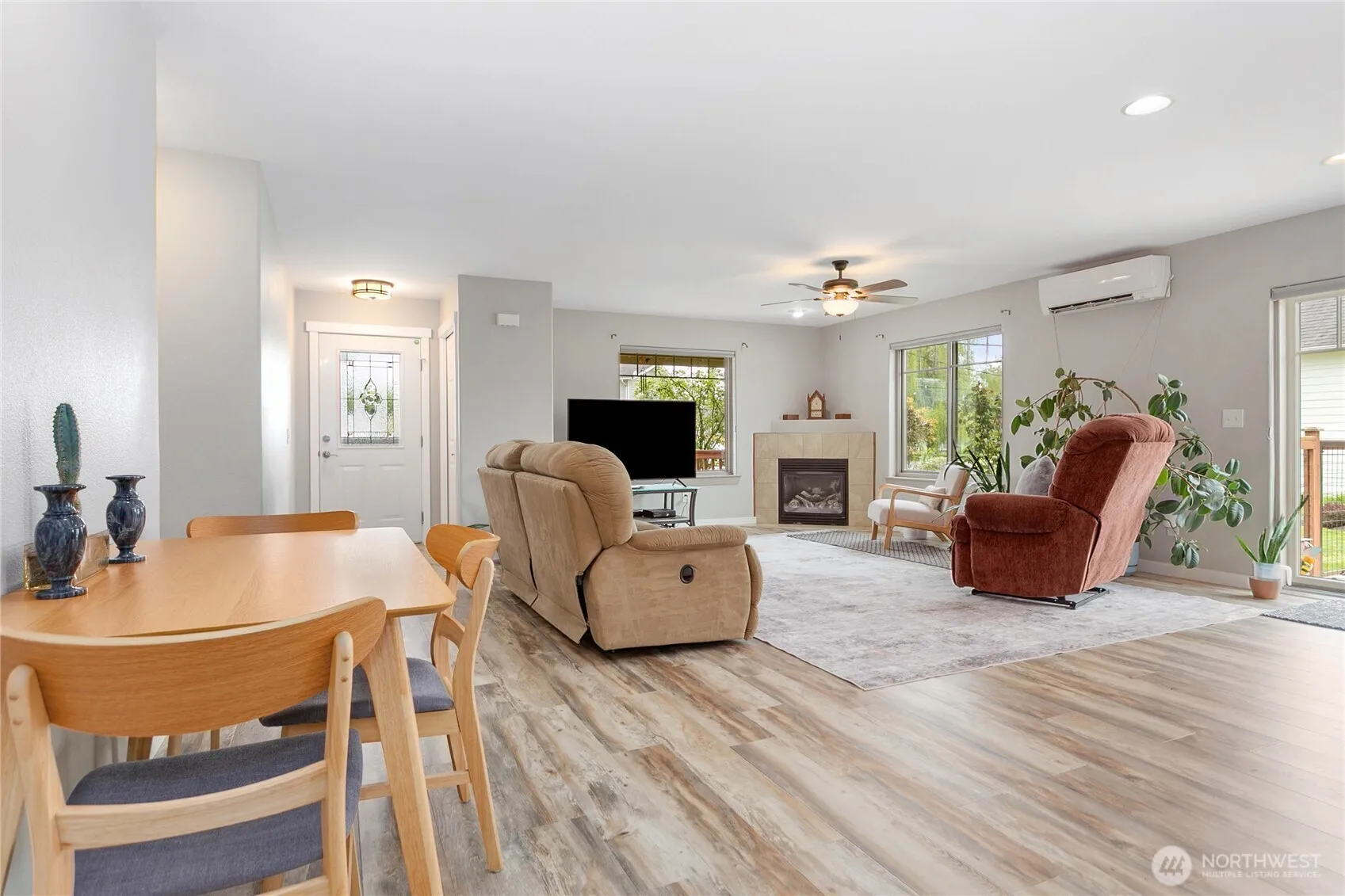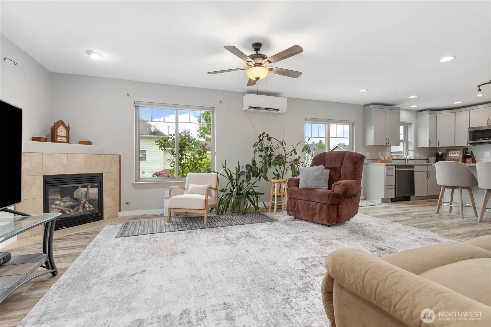 Impeccably maintained single level home in Sumas offering three bedrooms, two bathrooms, and 1,300 square feet of comfortable living space. Enjoy an open concept layout with spacious rooms and seamless flow. Perfect for everyday living and entertainment. The kitchen features stainless steel appliances and opens up to a bright living area. Home was recently updated with a new walk-in shower in primary bathroom, new Anderson windows, new 30-year roof, and fresh paint. Stay comfortable year-round with an energy efficient mini split providing both heat and AC. Step outside to a large fenced yard with alley a generous patio for ideal gatherings, and plenty of room for RV Conveniently located close to schools and parks, this home is move in ready and a must see.
