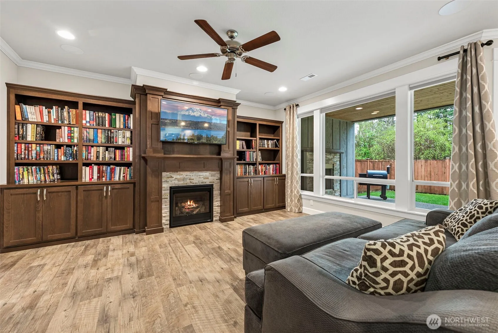 Beautiful one-owner home that backs to a peaceful wooded area in the gated community of Emerald Pointe. This open concept home features high end finishes throughout, including built-in shelving & cabinetry, two gas fireplaces (one inside w/blower & one outside), living room & covered patio speaker system, custom window treatments, recessed lighting, a gourmet kitchen with a new 68″ wide fridge/freezer, gas range, granite counters, and full height tile backsplash, and a huge primary suite with attached 5 pc bath w/granite counters, and tile bath & shower surround. There is a second primary suite on the main level with an attached 3/4 bath, offering multi-generational or income producing potential. 5th bedroom upstairs offer flexibility and could be play room, media room, etc. The covered patio has a gas fireplace, TV hookup, built in speakers, tongue & groove ceiling w/lighting, and is enclosed on 3 sides for year-round entertaining. HOA dues cover the front yard landscaping and the front yard sprinkler system. All located within minutes of amenities such as schools, shopping, medical facilities, dining, yet just a short drive from endless outdoor recreation options.