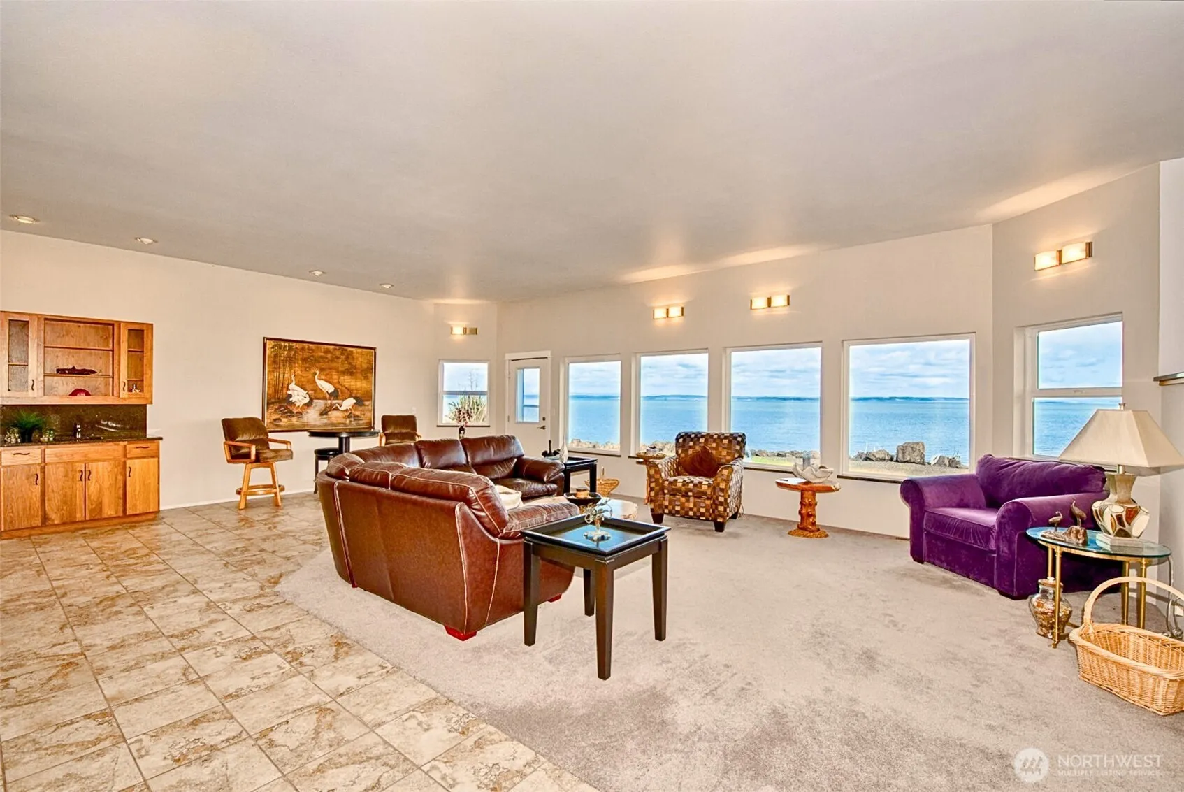 Ocean Shores ~ Exquisite BAY FRONT HOME! Grand Entrance brings you into the Open Concept Home w/a WALL of WINDOWS so you can experience Magnificent Sunrises; Ever Changing Water Views; Mount Rainier & the Olympics! This Home is 2,676 square Feet ~ Primary has a jetted Tub & Tiled Walk-in Shower; Counter w/double sinks; Walk in Closet & its own Private Deck. An additional 2 bedrooms & 3/4 Bath w/Tiled Walk-in shower for Guests. Wood Burning Fireplace in the Living Room & a Wet Bar! Expansive Kitchen w/Porcelain Tile Flooring; Quartz Counter Tops; Island Seating for Morning Coffee & Snack Time; Room for dining table ~ Walk in Pantry. Large Laundry Room w/New Water Heater. Heating & Cooling provided by a 3 year New Heat Pump System. 50 year Roof installed by roof doctor in 2007. 2 Car Garage & Shop 1,161 square feet w/Pellet Stove & 1/2 Bath; also attached is a 2 car 575 square foot Carport w/shed that Houses a Generator that stays w/the home. Multipurpose 532 square foot Fully Finished FUN Room over the Garage. Walking distance to the O/S CC Bayshore Clubhouse w/indoor heated pool; Saunas; Gym & Fitness Center; so much more! Short Drive to Downtown & Oyhut District for Shopping; Dining Options & Entertainment. 2 Fresh Water Lakes for Fishing & Boating; 23 miles of Interconnecting Canals for Kayaking, Canoeing & Paddle Boarding. Stroll the Nature Trails of Weatherwax. On the BEACH Join in FAMOUS Clam Digs! So much FUN for Everyone!