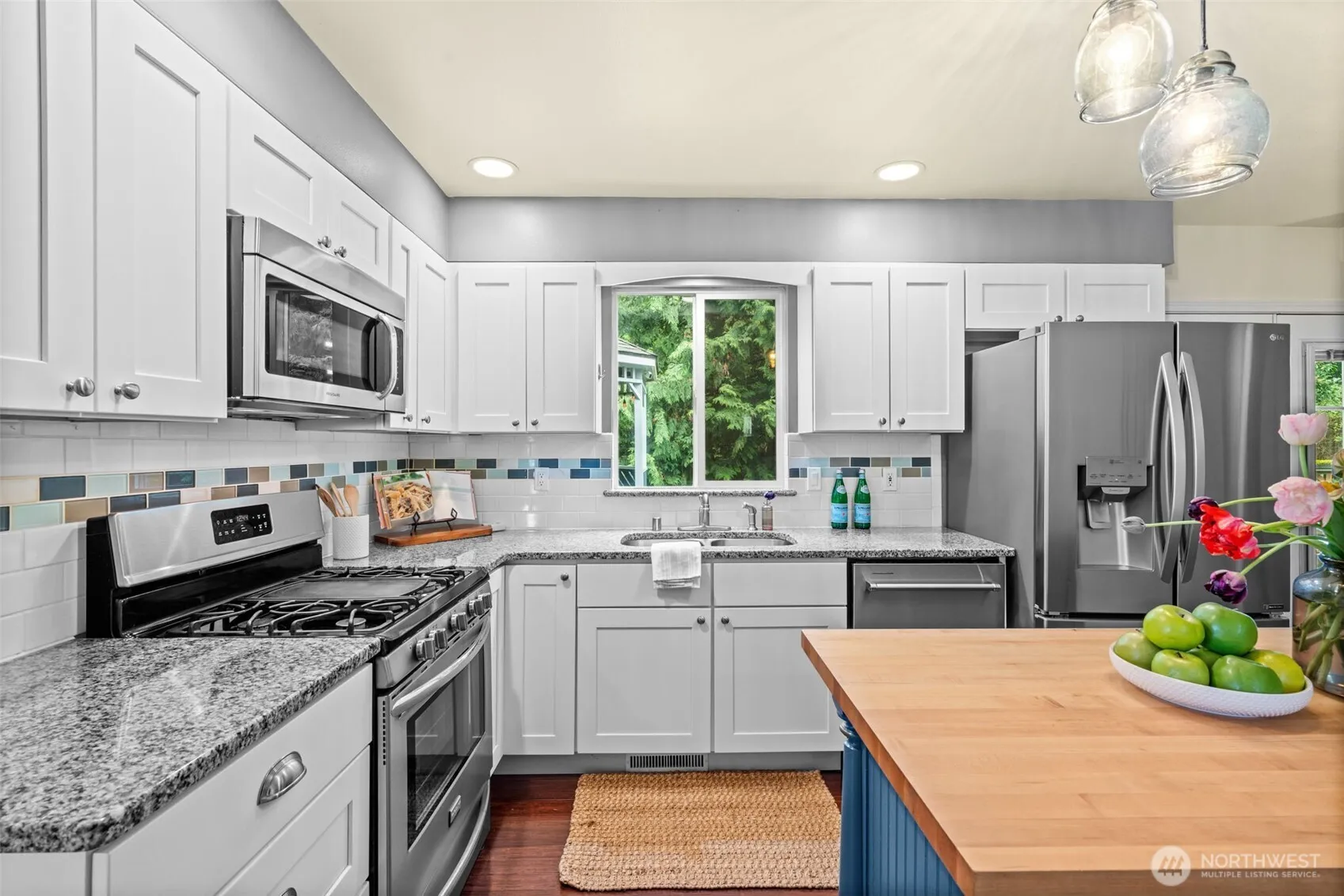 Tucked into the desirable Canyon Estates neighborhood on a quiet cul-de-sac in Bremerton, this refreshed 4-bedroom home blends comfort, function, and inviting outdoor living. Step onto the welcoming front porch and into a bright interior with a circular floor plan designed for everyday ease and effortless entertaining. The updated kitchen showcases granite countertops and a large island—perfect for prep, dining, and gathering—and opens to a spacious deck, creating seamless indoor-outdoor flow for hosting and relaxing. The adjoining family room leads directly to a beautiful backyard retreat, thoughtfully designed for enjoyment. Upstairs, all four bedrooms provide privacy and flexibility, including a spacious primary suite with a generous walk-in closet. The additional bedrooms offer room to grow, work, or play—tailored to fit your lifestyle. Out back, the yard is ready to impress with a soothing water feature, cozy fire pit, and a large gazebo perfect for summer BBQs. RV parking adds extra convenience with power hook up, while a newer roof offers peace of mind. All of this in a sought-after location close to local amenities, bases, ferries, and everything Bremerton has to offer!