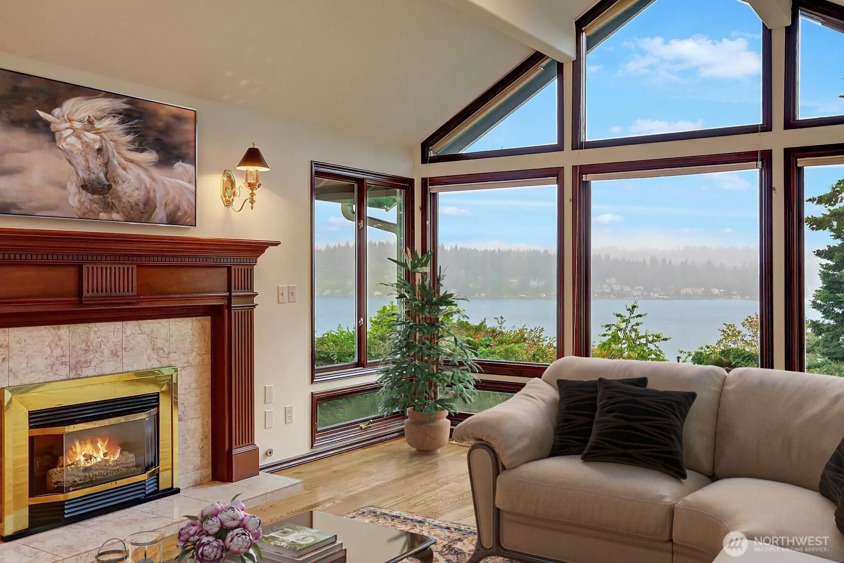Wake up to sweeping 180-degree views of Lake Sammamish every single day. Nestled on .701 acres of enchanting gardens, winding walkways, and a running creek, this 3-bed, 2.75-bath, 3,300 sq ft home is a true urban oasis. Vaulted ceilings and floor-to-ceiling windows flood the living and dining rooms with light and lake views. A sunroom off the primary suite means you enjoy those views year-round. Terraced decks are perfect for entertaining. Grounds are private and lush with built-in sprinklers — view trees are on your property, so you control your water exposure. Private beach access shared with just 4 other homes, plus a deluxe shared dock. Easy access to E Lake Sammamish Trail. Refinished hardwoods, new roof in 2022, 3-car garage with workshop. Downstairs bonus room with closets offers flexible space for guests or additional sleeping. The bones, the setting, the views — all extraordinary. Bring your creativity and make it entirely your own. Your imagination. Your lake. Your move!