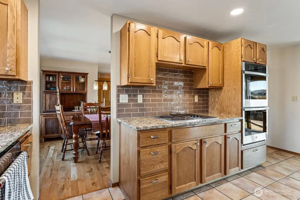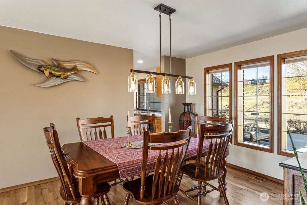Experience one of the most breathtaking views in Yakima, where the scenery transforms with the seasons, offering a sense of peace and serenity. This home, situated at the end of a road with an unobstructed view, is ideal for those seeking a single-level residence with minimal yard maintenance. It boasts a stunning view of the Naches River and ample space around the property for parking an RV (with waste station), as well as room for future expansion. Step inside to admire the hardwood floors and appreciate the living room’s picturesque view, complemented by a separate dining area perfect for entertaining. The kitchen has been upgraded with granite countertops and modern appliances, while the separate family room offers a cozy atmosphere with its view and pellet stove. The main bathroom features a granite countertop and a freestanding bathtub. Ideal for unwinding. The primary bedroom includes an upgraded shower and generous closet space, with an adjoining door to a separate bedroom. This connected room can serve as a nursey or be utilized as an extended bedroom or office area. At the back of the home, a deck provides a perfect spot for barbecuing or simply relaxing while taking in the view. The property also includes an attached two-car garage. Additionally, there is a separate ADU, complete with its own 2-car garage and a studio setup, just a few steps from the main house. This also has a panoramic view and features a murphy bed and heater in garage.