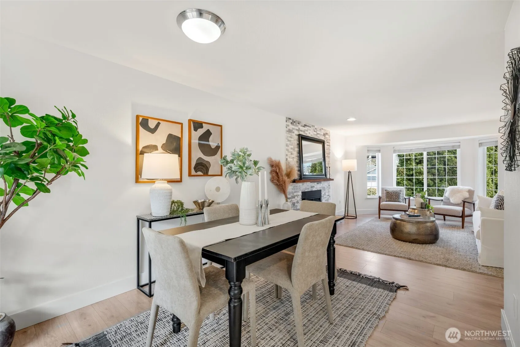 Beautifully positioned, end of cul-de-sac lot, nestled in a quiet neighborhood w/low maintenance PNW vegetation surrounding the fully fenced, level yard. This picturesque setting includes an array of updates inside and out along with many lifestyle conveniences to include new flooring, fresh paint, A/C, gas fireplace, kitchen pantry, recessed lighting and cabling for TV mount, stainless appliances to include a large capacity double door fridge, double shower heads within remodeled Primary bath, walk-in Primary closet, dedicated laundry room with sink, sliding door off kitchen/dining spaces to fenced backyard with expansive outdoor entertainment patio, firepit and large garden shed. Located close to all major conveniences, coveted schools, public transit options, parks & Silver Lake. Professional pre-inspection and sewer scope completed.