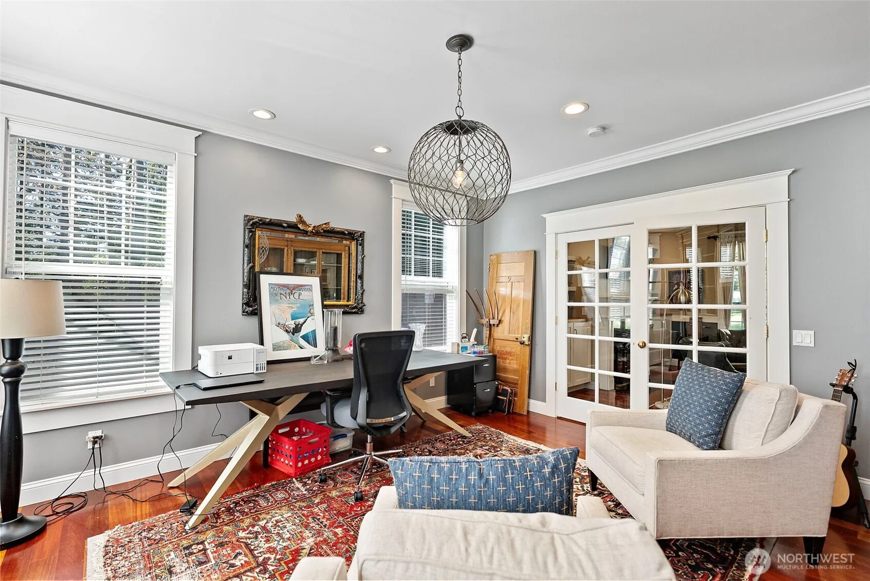 Charming farmhouse set on a peaceful, private acre where thoughtful design meets everyday comfort. This custom-built home welcomes you with extensive millwork, French doors, and warm built-ins. The main level features inviting living spaces. Upstairs you’ll find the primary suite with updated bathroom and walk-in closets. A lovely balcony deck. There are 2 generous bedrooms, while the top floor offers a flexible space for art studio, or oversized bonus room filled with natural light. The expansive laundry/mud room is both practical and delightful, complete with a coffee bar for slow mornings and seamless organization. A detached office with shop provides ideal workspace and extra storage for hobbies, tools, or gardening. Step outside to a backyard designed for connection and relaxation—gather around the dedicated firepit on flagstone pavers under bistro lights, barbecue beneath picturesque shade trees, and enjoy incredible sun exposure for raised garden beds and a charming chicken coop. RV parking adds flexibility, while dry-bed drainage and a gentle fountain enhance both function and ambiance. The home is served by a 5-BR septic, offering potential to add a garage with finished space above. Recent updates include a newer furnace and heat pump providing efficient heating and cooling year-round, plus an updated kitchen featuring Bluestar appliances with dual ovens, cooktop, and dishwasher. A rare blend of privacy, flexibility, and modern comfort.