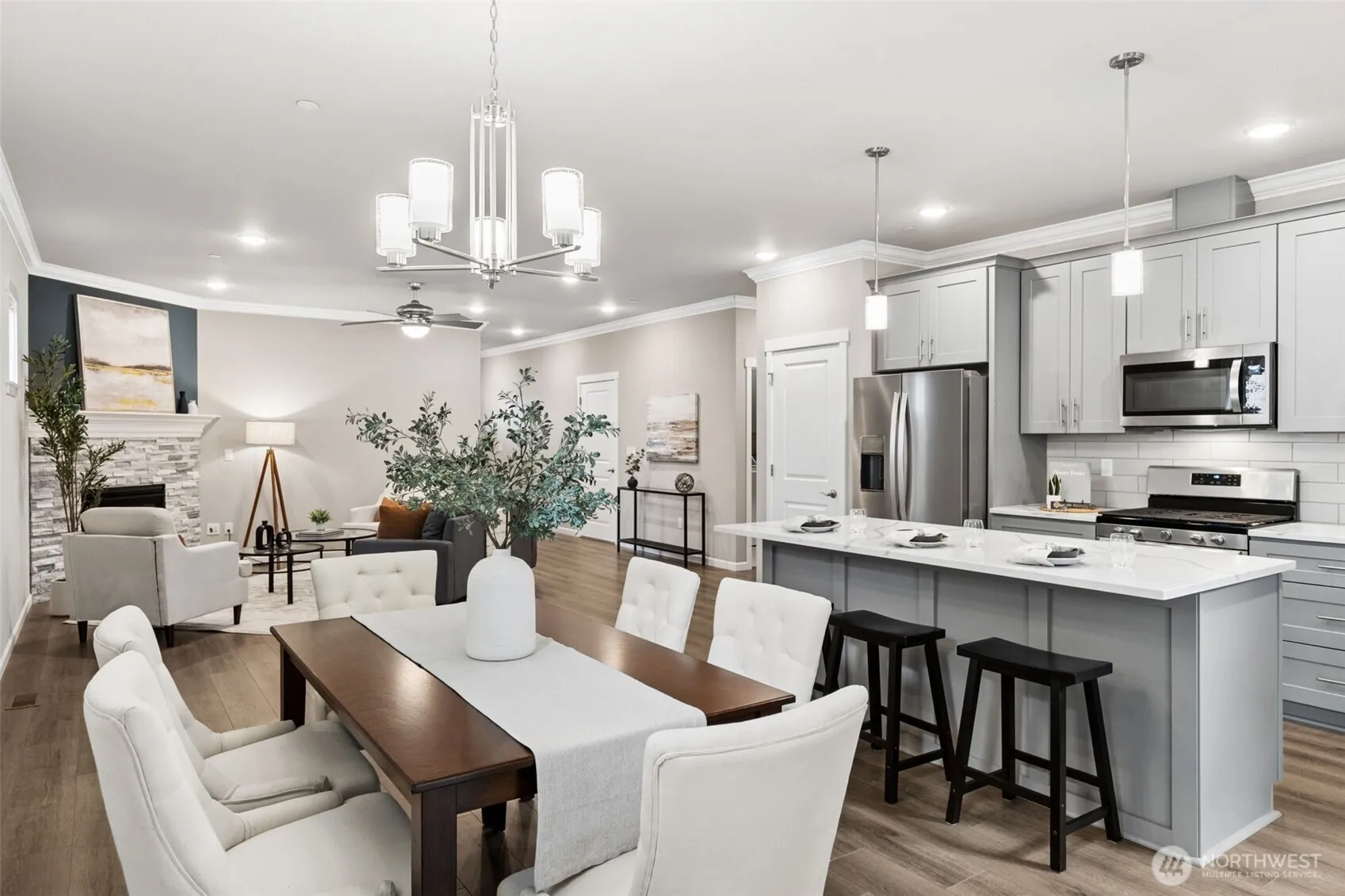 Looking for a low maintenance home & lifestyle? Come find it at Mill Pond, where comfort, convenience, and easy living come together! The popular Cherry model offers a thoughtfully designed 1,752 SF rambler with true ONE-LEVEL living—perfect for a carefree lifestyle. This very energy-efficient, meticulously maintained one-owner home shines with pride of ownership throughout. Step inside to discover an open-concept layout featuring high ceilings and lots of natural light. The spacious kitchen features stainless steel appliances, an oversized island ideal for gathering, and flows seamlessly into the inviting great room, complete with custom crown molding and a cozy gas fireplace! The primary suite is very spacious & offers a walk-in closet and private ensuite bath. Two additional generously sized bedrooms, a second full bath, and a large laundry room provide flexibility and function for everyday living. Additional highlights include forced-air natural gas heating & central A/C, a fully finished two-car garage, and a fenced, private backyard with a covered patio . . . for year-round enjoyment. Enjoy the benefits of a master-planned community with sidewalks, parks, and green spaces, plus direct access to the Chehalis Western Trail for miles of walking and biking. Conveniently located near I-5, Providence Hospital, and local amenities, this home offers low-maintenance living and an active lifestyle. If you’ve been searching for a clean, modern rambler in Olympia—this is it!