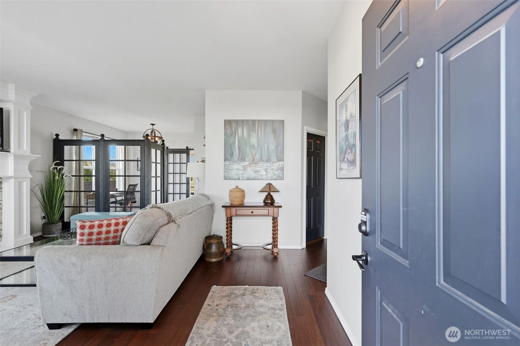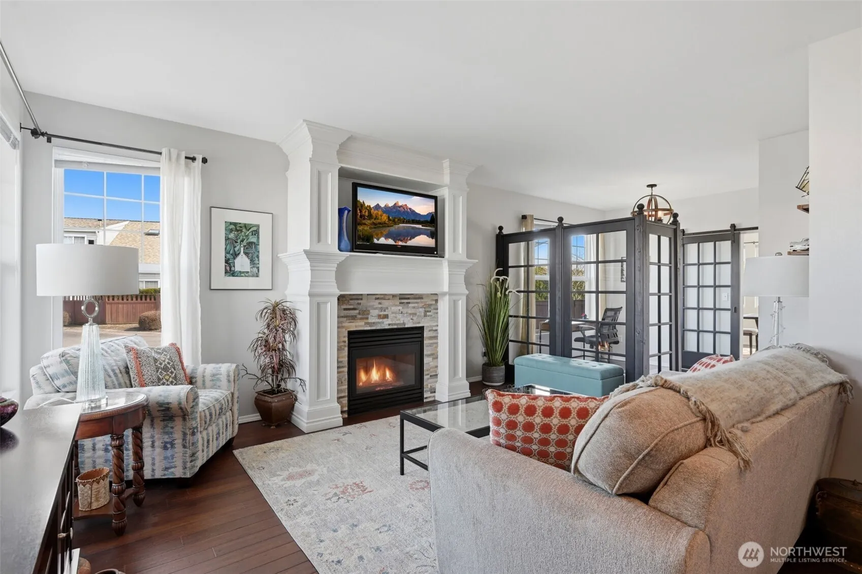Absolutely spectacular Riverwalk stand-alone, single step condo, thoughtfully remodeled and meticulously maintained. Tucked on a quiet cul-de-sac, corner lot, this light-filled home offers a rare blend of tranquility and convenience with direct access to the scenic riverwalk trail just steps away. Designed for effortless, low-maintenance living, the interior has been beautifully refreshed with bamboo flooring throughout, new interior paint, updated countertops, vanities, fixtures, lighting, and custom window treatments including blinds and drapes. The flexible office feature wall is free-standing, allowing for adaptable living or work-from-home functionality. Major system upgrades provide peace of mind with a new furnace, A/C, and water heater. Outdoor living is equally inviting, featuring an expanded patio with privacy hedge and a water feature for ultimate relaxation. Sprinkler and drip system, plus a custom 18’ retractable awning with remote—perfect for year-round enjoyment. This quiet, well-kept community is known for its ease of living and pride of ownership, often attracting those seeking simplicity without compromise. Whether you’re purchasing your first home or right-sizing into something more refined, this home delivers turnkey comfort with undeniable charm. Ideally located near beloved local destinations like Farm 12 and other great farm to table dining options as well as charming Sumner and Puyallup downtowns. This won’t last!