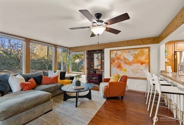 Beautifully updated 3-bedroom, 2-bath rambler nestled in one of Edmonds’ most beloved neighborhoods, just moments from the trails and shoreline of Meadowdale Beach Park. Easy one-floor living with thoughtful upgrades throughout. The heart of the home is a stunning remodeled kitchen featuring modern cabinetry, updated countertops, and stainless appliances — seamlessly flowing into a light-filled extended living room bathed in natural light, perfect for everyday relaxing and entertaining alike. Skylights in the spacious primary suite create a serene, airy retreat, complemented by a beautifully appointed ensuite bath. A second fully updated bathroom serves guests with equal style. Step outside to your own private sanctuary — a large fully fenced yard with a patio ideal for outdoor dining and entertaining, warm hot tub, level yard allowing for garden beds ready for your green thumb, and established fruit trees including apple, pear, and plum that reward you season after season. Then venture beyond to Meadowdale Beach Park’s forested trails, picnic areas, and Puget Sound beach access just moments away. All this, with the convenience of single-level living and move-in ready finishes throughout. New Heat Pump and AC lower your utility costs and keep home cozy in every season. Close to shopping, freeways & lightrail. Welcome home!