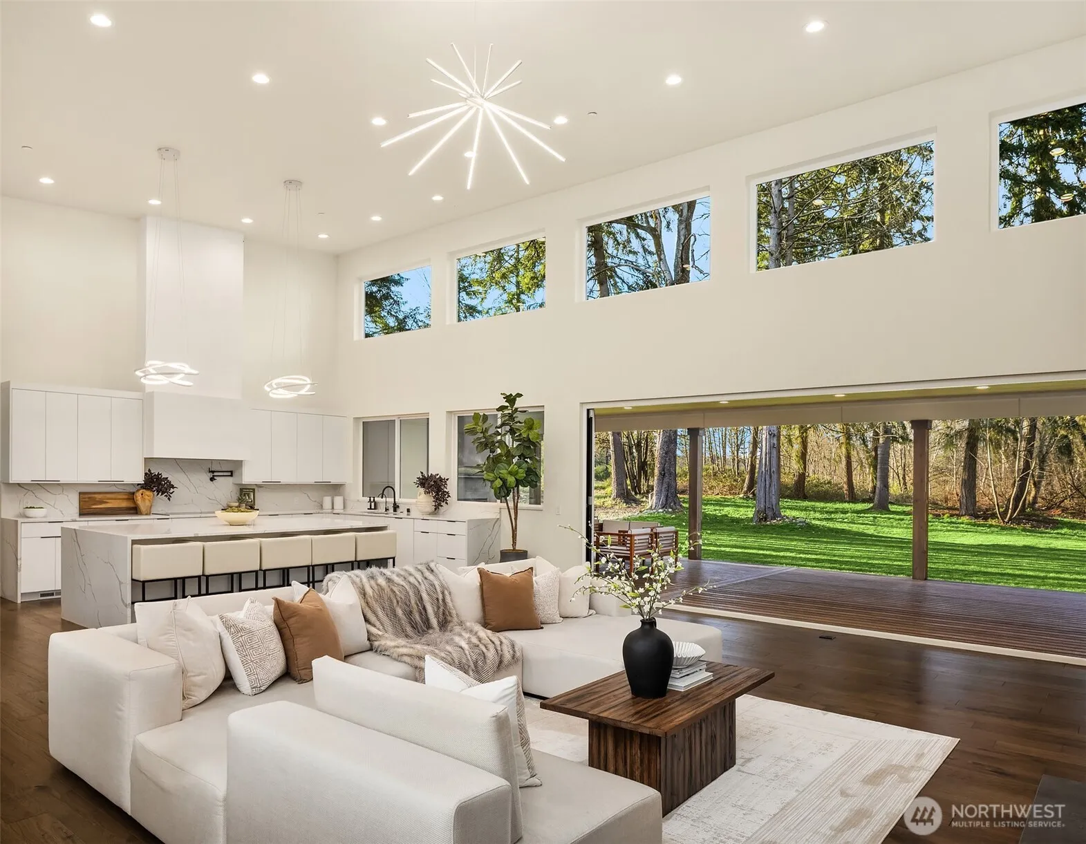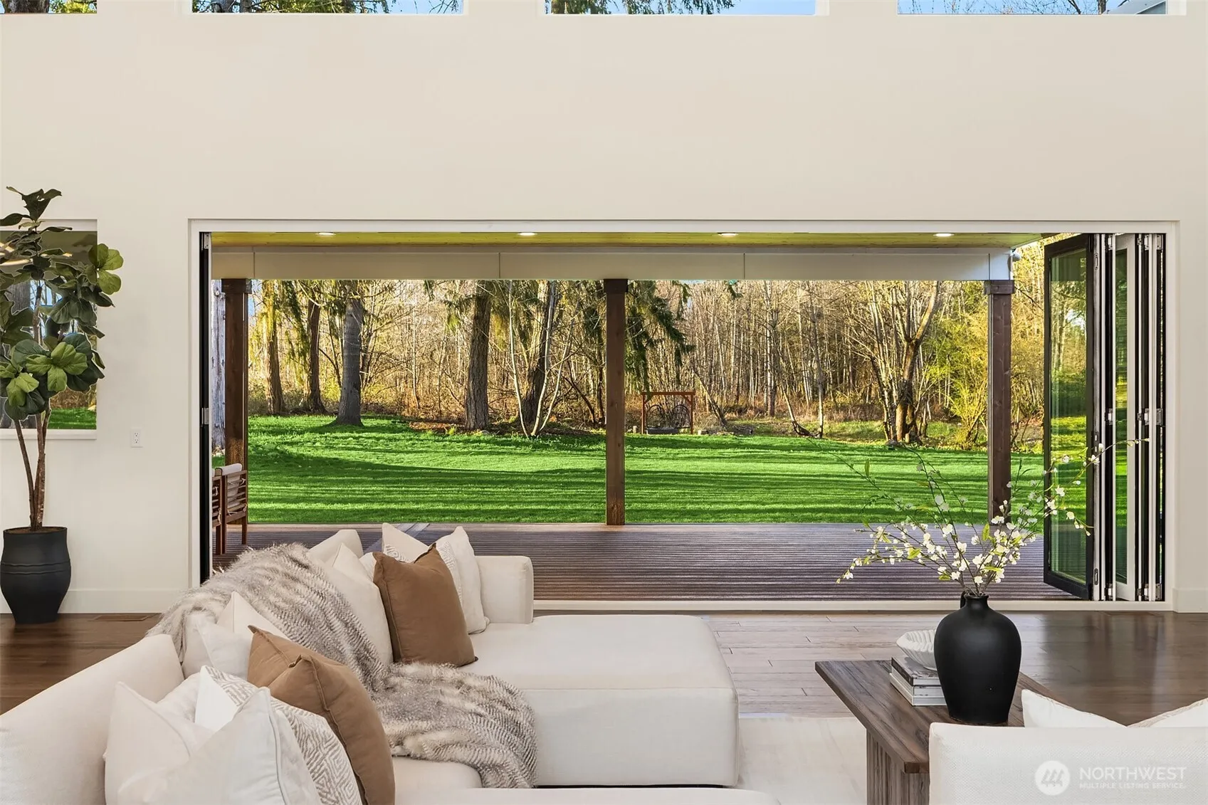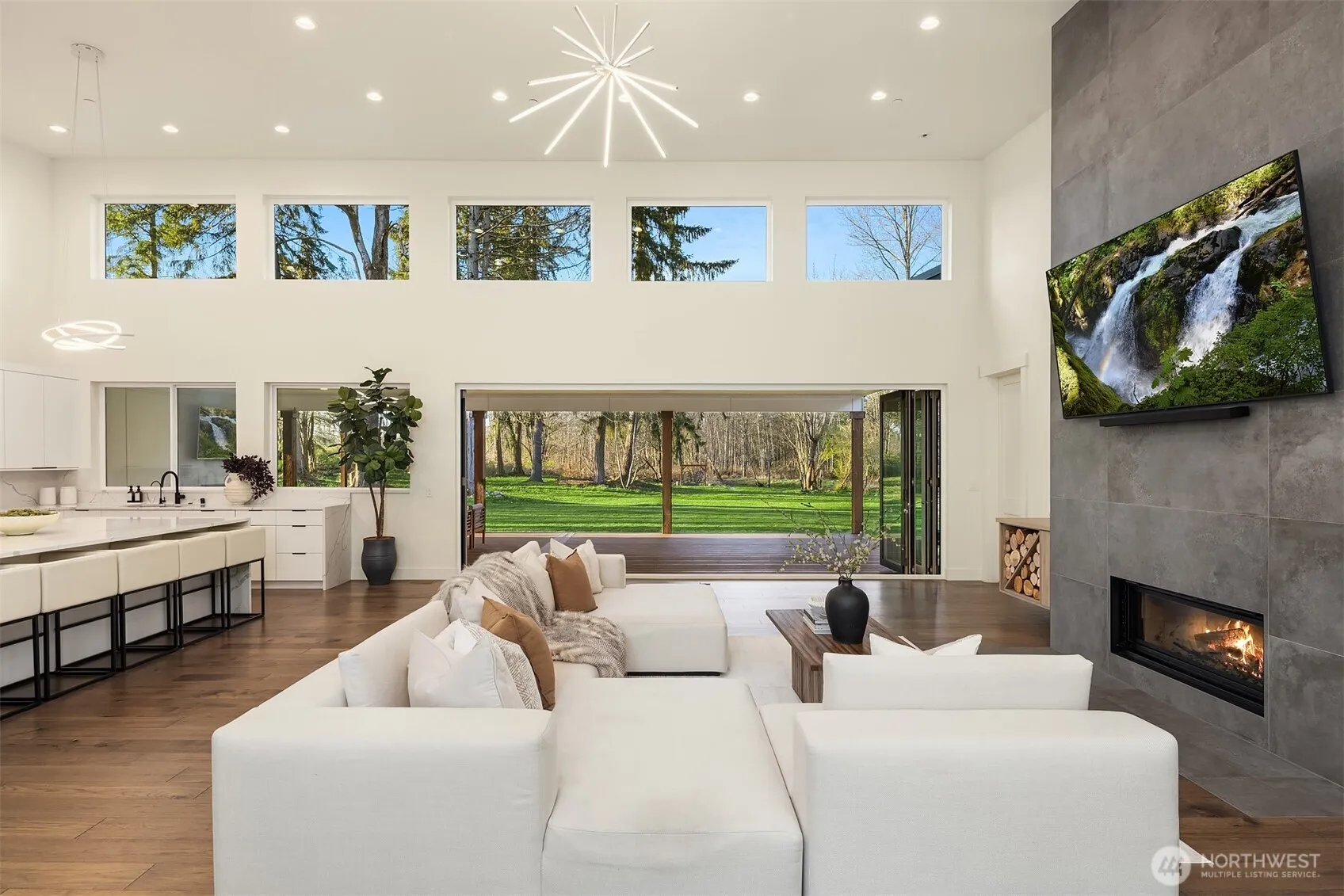 Modern Northwest living meets rare land opportunity in Graham. Set on a beautifully level, expansive lot, this residence offers both refined design and the flexibility to expand with ample space and potential for a future DADU. The existing septic is approved, with electricity and water already on site and ready to connect, ideal for a future build or additional dwelling. Striking contemporary architecture is complemented by clean lines, mixed materials, and a thoughtfully designed layout. Inside, soaring ceilings and oversized windows flood the home with natural light, while the open-concept great room centers around a dramatic floor-to-ceiling fireplace. Expansive sliding doors create a seamless indoor-outdoor connection to the covered patio, complete with fireplace, perfect for year-round entertaining. The chef’s kitchen features a large quartz island, custom cabinetry, premium appliances, and a walk-in pantry, blending functionality with elevated design. The primary suite offers a serene retreat with direct outdoor access and a spa-inspired bath with designer finishes and a walk-in shower. Generous secondary spaces provide flexibility for guests, office, or media, while the sprawling grounds offer endless possibilities, garden, recreation, or future DADU. Private, peaceful setting with modern comforts and room to grow, this is Pacific Northwest living at its best.