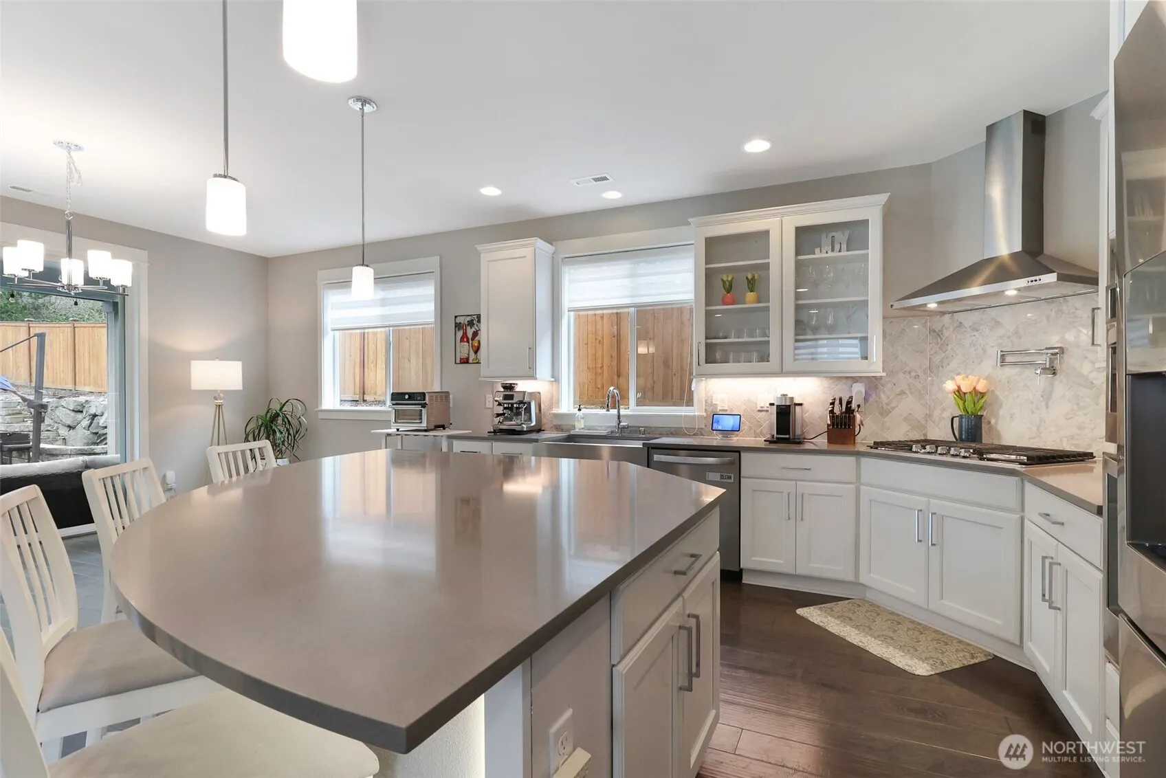 This beautifully appointed 2018 Dumas Bay home has been thoughtfully designed from top to bottom. Elevated finishes include 9′ ceilings on both levels, 8′ interior doors, A/C and smart home features throughout. The gourmet kitchen impresses with a large quartz island, glass cabinets and dining space that opens to the Great Room. The main floor also features a guest bedroom, 3/4 bath and a bright office/flex space. Upstairs you’ll find a versatile loft/family room, three well-sized bedrooms and laundry room. The primary suite is a true retreat with peek-a-boo sound views and a luxurious 5-piece en-suite bath. A secondary bedroom is currently setup as a 2nd walk in closet but cabinets can easily be removed if desired. The covered rear patio extends your living space outdoors no matter the season. The fully fenced backyard offers fruit trees, garden space (with above-ground sprinkler system), & custom paver patios that will make entertaining or relaxing a breeze. Enjoy PNW living with Dumas Bay Beach, Dash Point State Park, miles of trails & local parks minutes away. Close to schools and 15 mins to The Commons & I-5. This is the one you’ve been waiting for!