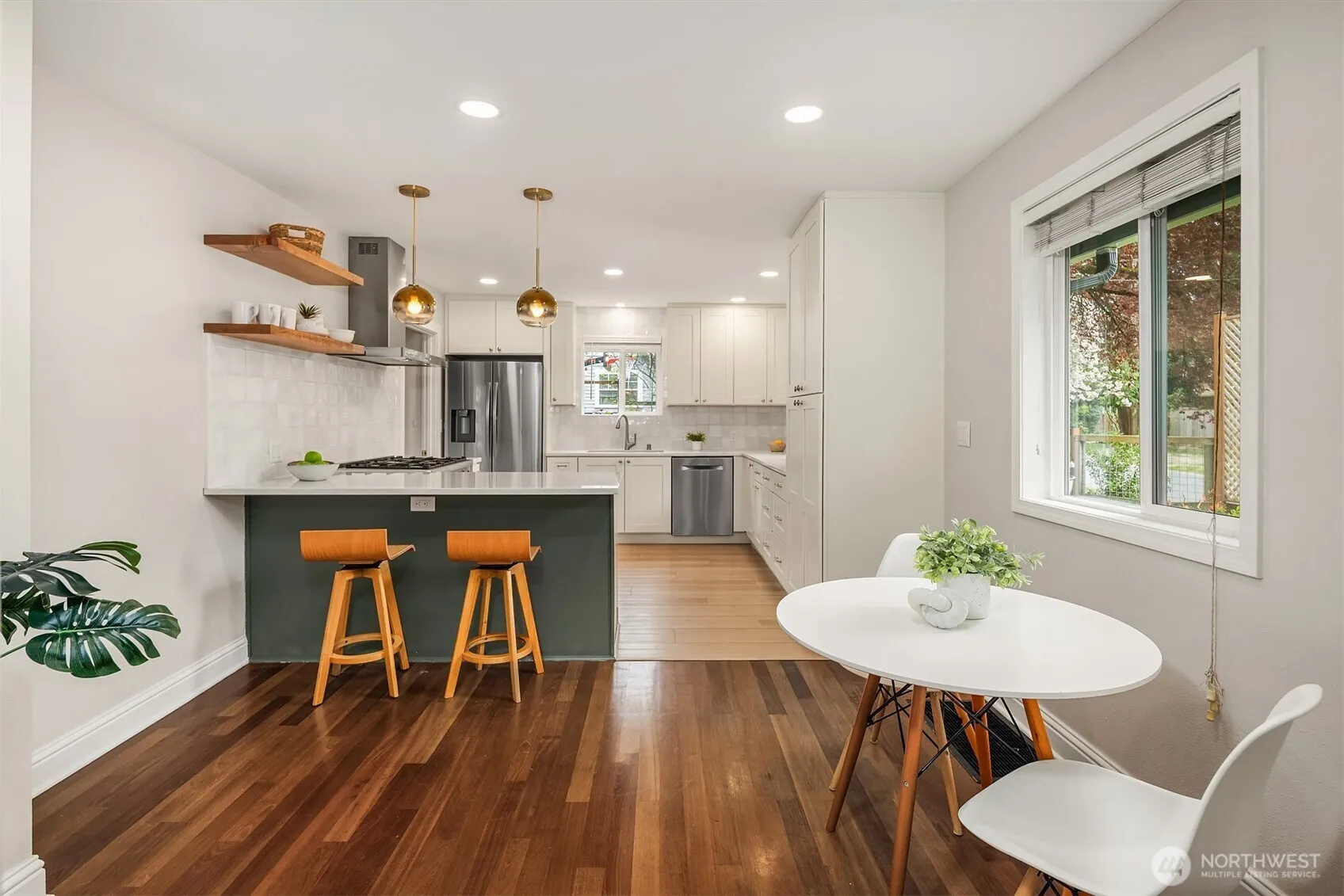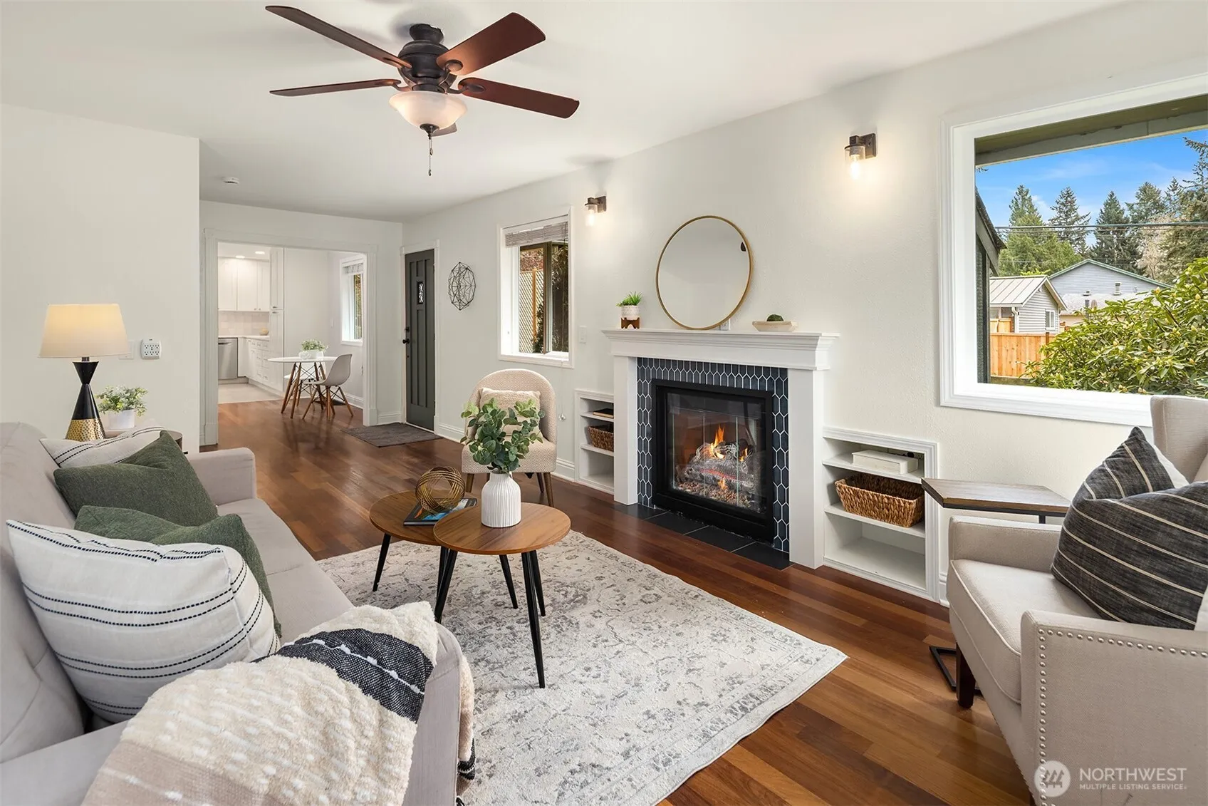 Storybook charm meets thoughtful updates in this picture-perfect home, perched on a corner lot with a fully fenced, beautifully curated yard. Garden beds, blooming landscaping, flower boxes, and a spacious patio create the ideal setting for outdoor dining and entertaining. A detached 2-car garage and long driveway offer both convenience and flexibility, plus a newer garden shed for added storage. Inside, the newly remodeled kitchen shines with top-of-the-line appliances, stunning countertops, abundant storage, and a large sink overlooking the landscape. The cozy living room is anchored by a gorgeous gas fireplace, creating a warm and inviting space to unwind. The main level features a primary bedroom, an additional bedroom, and a full bathroom. Upstairs offers incredible versatility with a bonus space, office area, ¾ bath, and another bedroom—perfect for guests or work-from-home living. Complete with A/C for warm summer days, this home is truly as charming as it is functional—one that just feels right the moment you arrive.