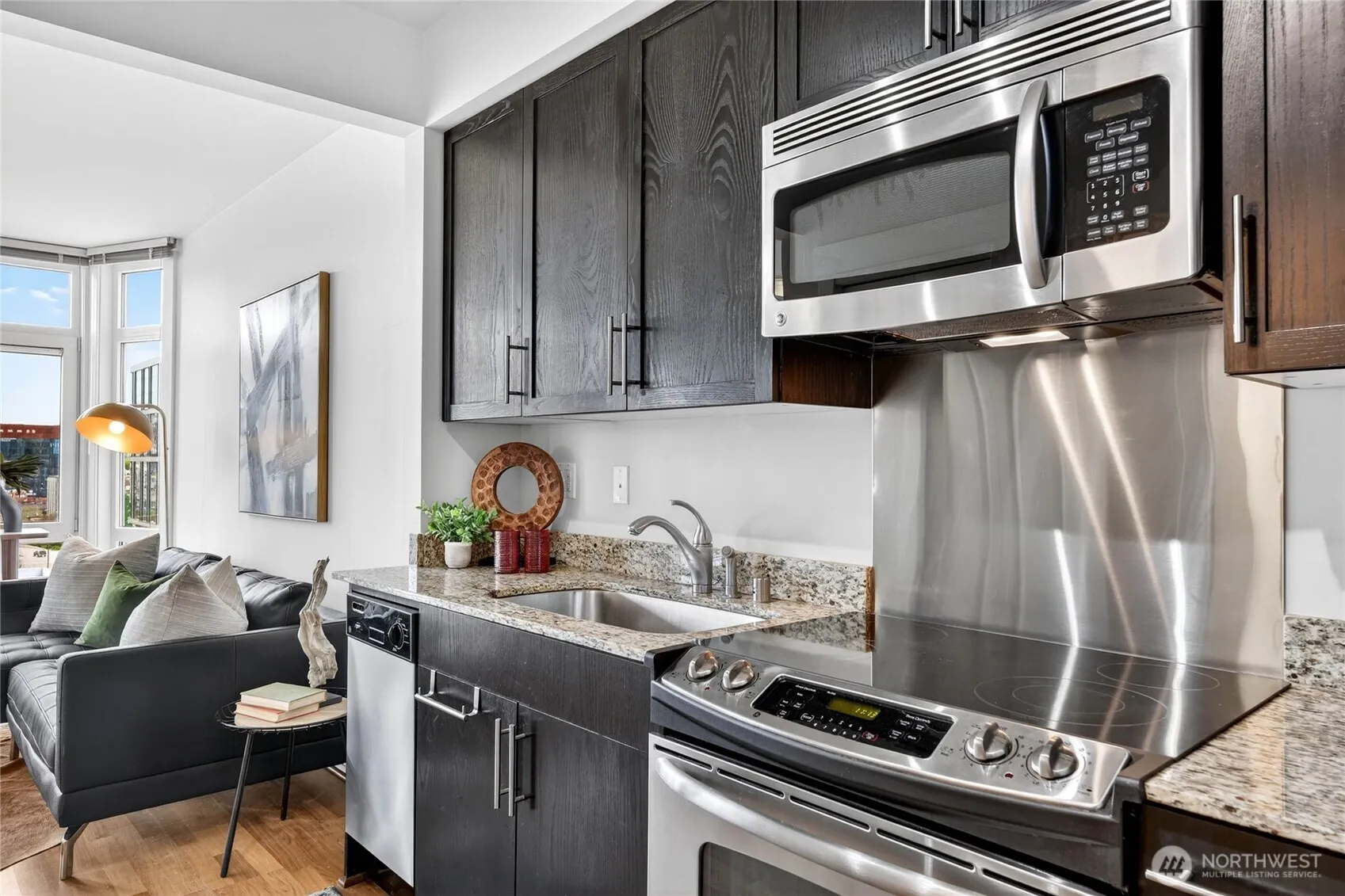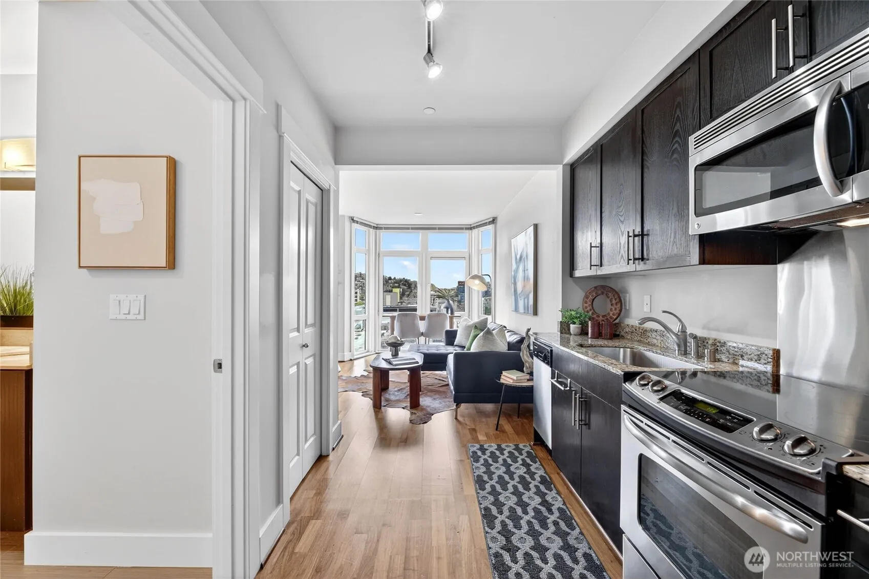 Bright, thoughtfully designed studio at the Marselle with floor-to-ceiling windows framing iconic Space Needle, MoPOP, and hillside views. Quiet, elevated 6th-floor position with exceptional natural light and open outlooks—rare for this location. Lives larger than typical studios with a highly functional layout, full-size kitchen, in-unit laundry, and Murphy bed for flexible living. Includes secure garage parking and storage. Enjoy front-row views of New Year’s fireworks from home or the rooftop decks. Steps to Seattle Center and Climate Pledge Arena, with easy transit to Lumen Field—host of Seahawks and the upcoming World Cup. Ideally located where Belltown, Queen Anne, and South Lake Union meet, blocks from Apple, Amazon, and Google. No rental cap and no special assessments—an increasingly rare opportunity. Pet-friendly and professionally managed, with premium amenities including fitness center, yoga studio, three rooftop decks with BBQ and Space Needle views, and resident lounge.