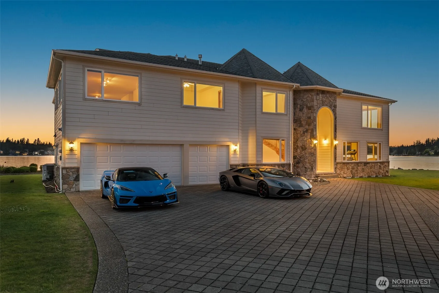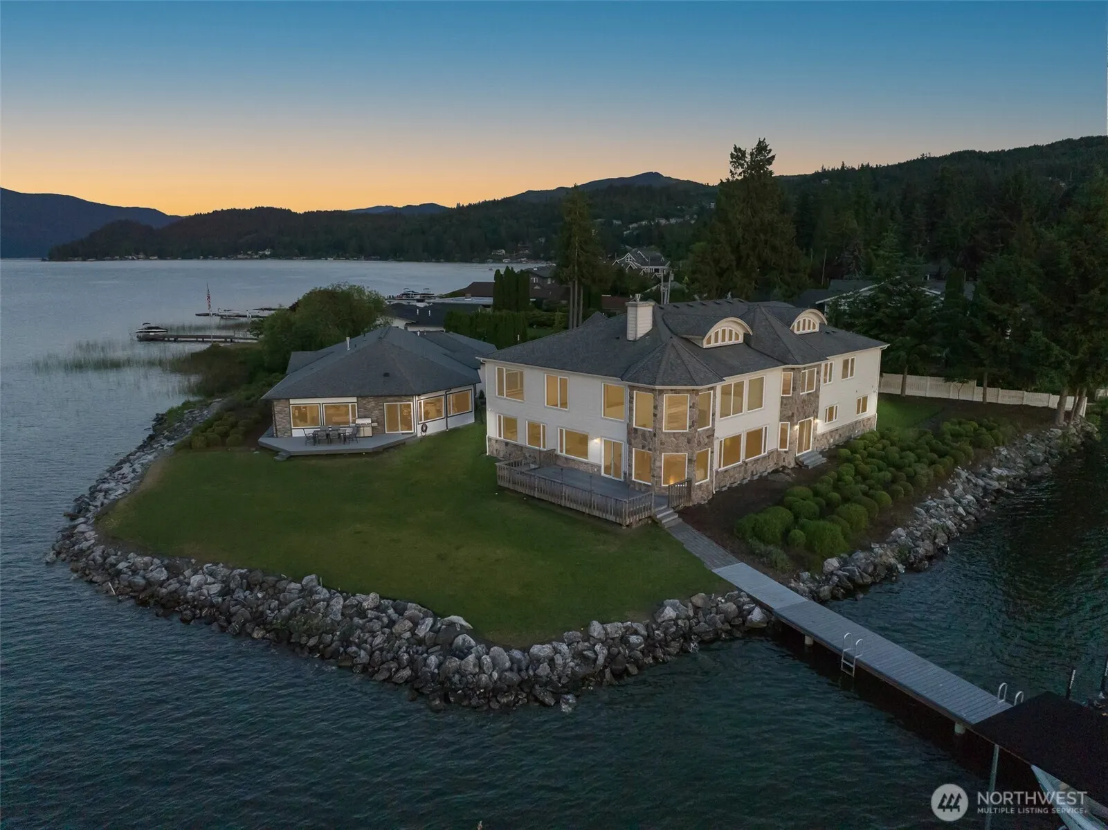 Own the POINT: A Stunning Estate, Discover the unparalleled beauty of this remarkable estate on Lake Whatcom, where luxury meets serenity. This magnificent multi-level home features 6 spacious bedrooms and 8 elegant bathrooms. As you step inside, you are greeted by exquisite solid cherry trim, doors, and cabinets that exude quality. The stunning Maple floors add warmth and character, while the custom kitchen, perfect for entertaining friends. The impressive two-story grand entry and living room create an inviting atmosphere, enhanced by the abundance of natural light pouring through oversized windows.This property originally envisioned as a turn-of-the-century hotel resort……experience lakeside living at its finest. Over $200k in watersports inventory with the sale of both properties…including an R5 Cobalt boat and two supercharged Seadoo’s.