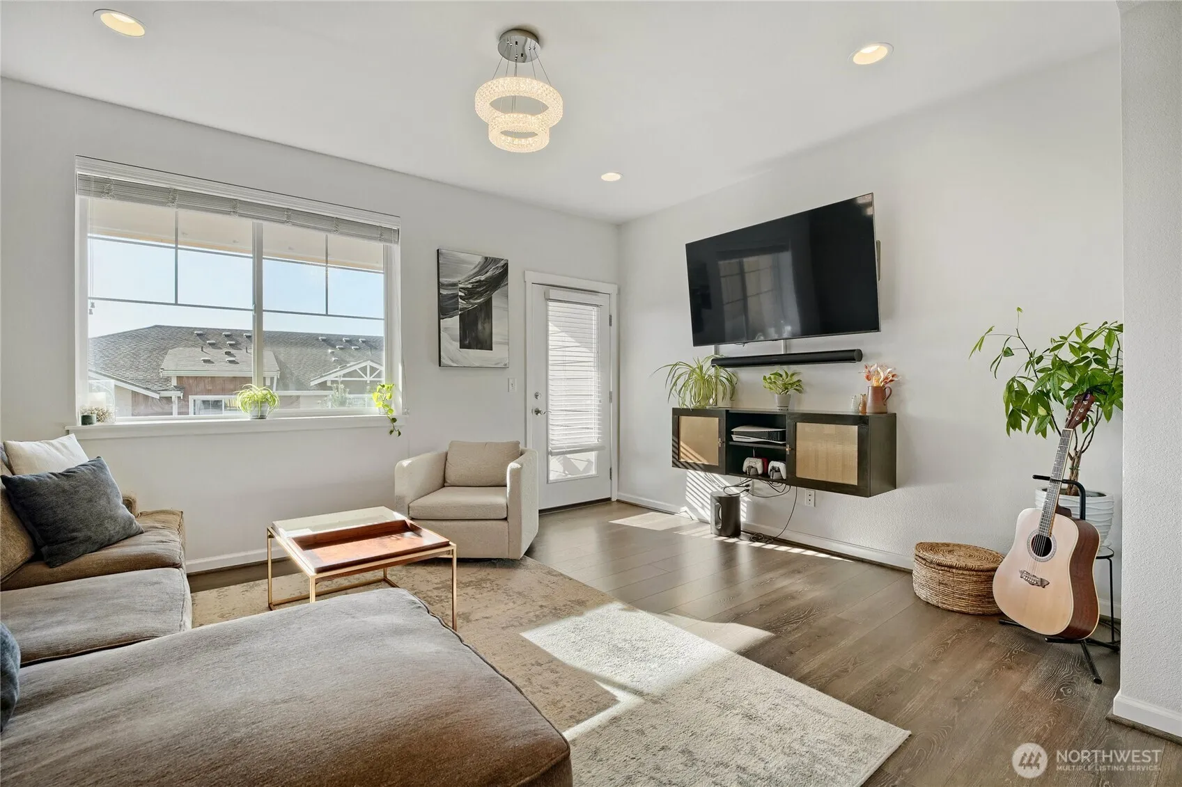Turn the key and step into easy homeownership in this beautifully crafted Taylor Morrison townhome in the sought-after Sunridge community. Better-than-new construction with thoughtful detail at every turn, this home lives bright, open, and effortless from the moment you walk in. The main level is built for the way you actually live: light pours through the living room into a welcoming dining space and a stunning kitchen featuring stainless steel appliances, soft-close cabinetry, and a generous center island with bar seating, ideal for weeknight dinners or weekend entertaining. Step out to the covered deck for morning coffee, summer BBQs, or unwinding to Pacific Northwest sunsets over the park-like grounds.Upstairs, both bedrooms are true private retreats, each with its own ensuite bath, and upper-level laundry makes daily life that much easier. The attached garage offers room for parking, projects, and storage. Sunridge itself is a quiet, gated community with a playground, walking trails, friendly neighbors, no rental cap, and low-maintenance HOA dues covering common areas and lawn care. The location is the cherry on top: minutes to Kent Station’s shops, restaurants, and Sounder commuter rail, the ShoWare Center, Lake Meridian, Kent’s vibrant downtown dining scene, major grocery stores, and quick access to I-5 & thoroughfares for easy commutes to Seattle, Bellevue, Tacoma, or the airport. Welcome home!