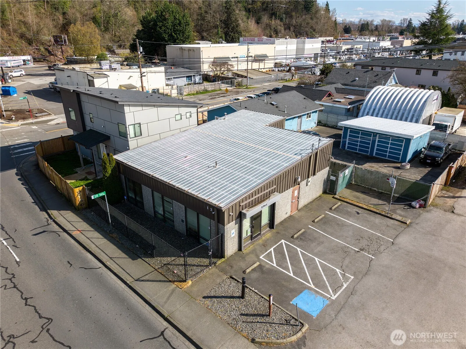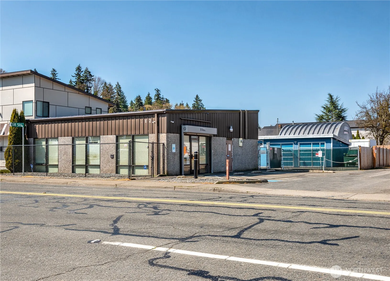 1,860 sq.ft. industrial retail/commercial building in a high-visibility Kent location with exposure to approx. 8,000–15,000 vehicles per day. Flexible CM2 commercial manufacturing zoning allows for a variety of permitted uses. Features include 6 off-street parking spaces plus a commercial roll-up door with additional interior parking or warehouse access. Interior offers approx. 300 sq.ft. office space with A/C, bathroom, kitchenette, and ample storage with industrial racking. Excellent access to downtown Kent, Central Ave, and Hwy 167.