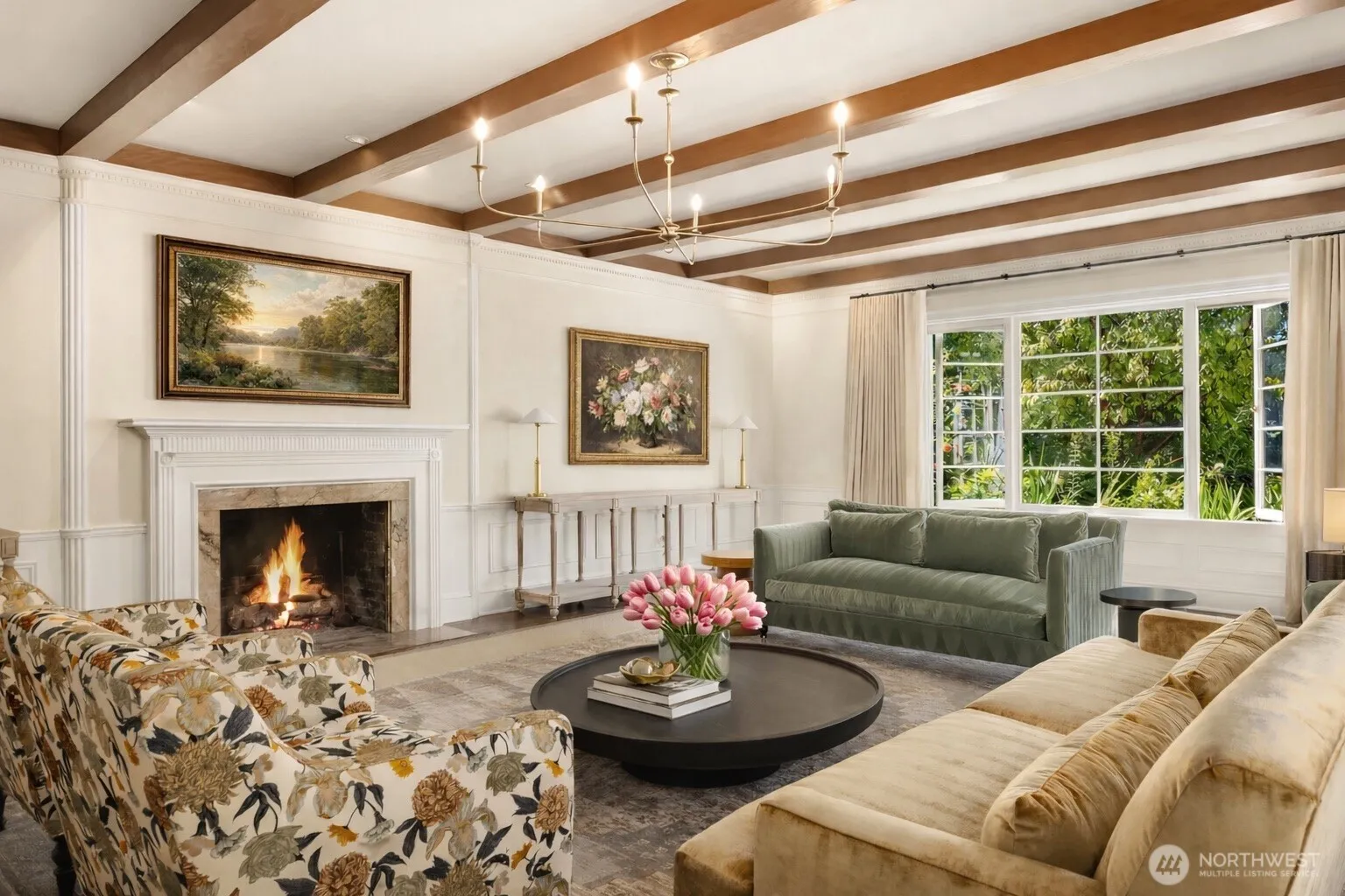 Tucked behind the gates of The Highlands, 72 Olympic Drive — once known as Cedargrove — is a timeless Georgian Colonial estate where nature, privacy, and gathering come together effortlessly. A winding approach leads to a circular drive and a welcoming arrival, while oversized doors open to a light-filled entry framed by sunset views of the Puget Sound and Olympic Mountains. The main level lives like a spacious rambler, anchored by a brand-new chef’s kitchen, family room, and seamless indoor-outdoor flow to terraces, rose gardens, and expansive lawns. A private primary suite with dual baths and water views offers a peaceful retreat, while five bedrooms upstairs and an indoor half basketball court create space for play and connection. Recently remodeled by Shultz Miller, the home blends classic architecture with modern comfort. Life in The Highlands offers quiet security, private beach access, trails, and community spaces — a rare balance of freedom and serenity.
