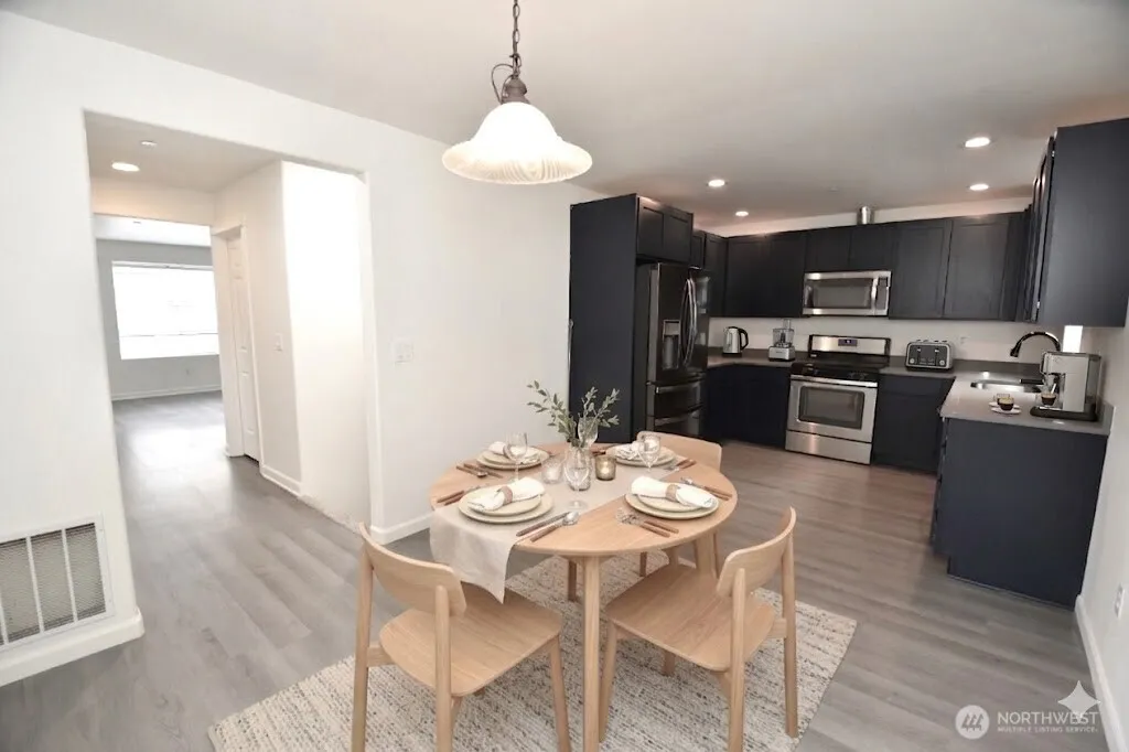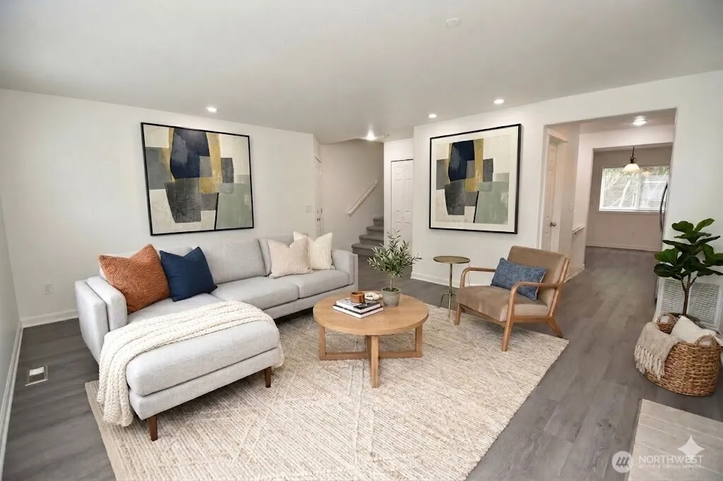 {Beautiful Mill Creek (End Unit) Town Home!} This refreshed townhome is turn key. new interior paint, new carpet, new garage door & more. Offering a shy 1700 sf, this 3 bedroom, 2.5 bath is a must see. Main floor is open concept featuring the kitchen, dining area & a cozy living room w/fireplace. Nice sized private deck off of the dining area. Bedroom & full bath on lower level offers flexibility for roommate, guest privacy, office space or other; garage entry allows private entrance to lower level. Primary bedroom w/ensuite & walk in closet on upper level, as well as a nicely sized guest room. Ideally located near the heart of Mill Creek w/easy access to I-5, shops, restaurants, medical & more. Attached 2 car garage & level driveway.