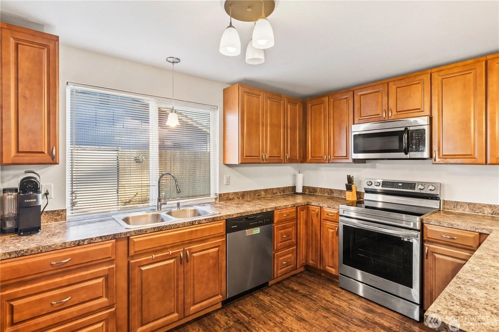 This unique single-level home offers 4 bedrooms and 2.75 bathrooms, plus a fully functional mother-in-law suite, providing the flexibility of a 5th bedroom in private living quarters in one exceptional property. The main home features a spacious primary suite with a walk-in closet, laminate hardwood-style flooring, stainless steel appliances, and a large pantry. Enjoy year-round comfort with a heat pump A/C and mini split (installed in 2020). Major updates completed around 2017 include the kitchen, flooring, siding, roof, windows, and skylights. The extra-large mother-in-law suite, added in 2017, is a true standout. It features brand-new carpet, a private entrance, independent heating and cooling, a convenient kitchenette, and a full bathroom, ideal for multi-generational living, guests, a home office, or potential rental income. Additional highlights include an extended driveway with ample space for trucks, RVs, boats, or multiple vehicles, no HOA, and a fully fenced backyard complete with a fire pit and garden area. Whether you need space for extended living or simply want maximum flexibility, this move-in-ready 4+ bedroom rambler with a private suite delivers comfort, versatility, and modern updates in one incredible package.