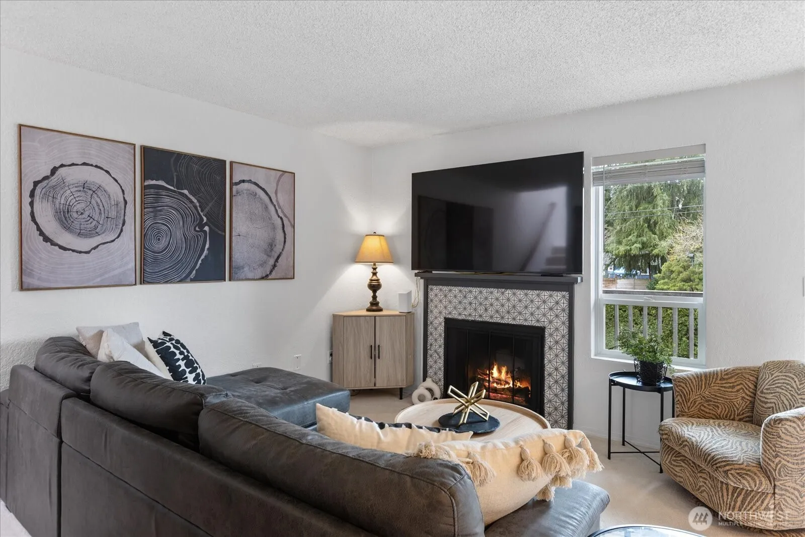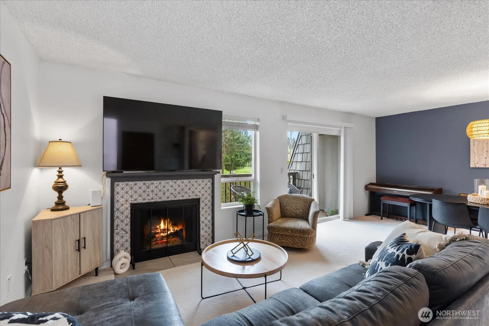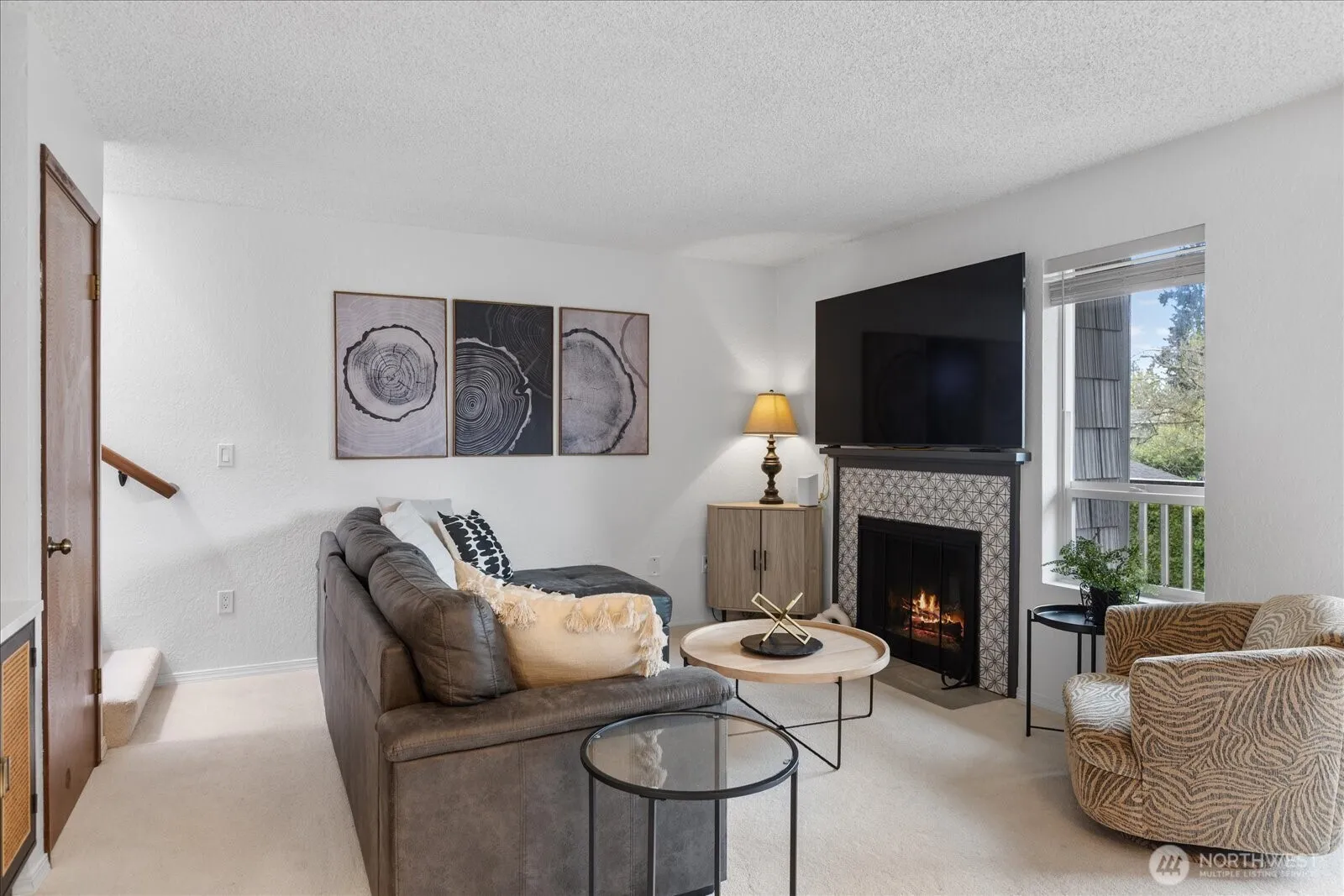 Welcome to the Golden Leaves condominium complex, a secured building offering comfort, convenience, and a vibrant lifestyle. This newly updated 2-bedroom unit is filled with natural light from its west-facing windows and boasts a large deck perfect for morning coffee, plus extra storage for everyday ease. Inside, you’ll find a beautifully tiled wood-burning fireplace, plush new carpet, and stylish new light fixtures that enhance the spacious living and dining areas designed for effortless entertaining. A convenient half bath is located off the kitchen and entryway. The brand-new kitchen is thoughtfully designed for easy meal prep, featuring all new cabinetry, quartz countertops, stainless steel appliances, a Fisher Paykel refrigerator, and a new sink. Upstairs, the primary suite and second bedroom are complemented by an updated 3/4 bath and a dedicated laundry room with full-size stacking units and additional storage. Residents enjoy one covered, dedicated parking space along with abundant guest parking, while the community cabana features a relaxing hot tub, exercise room, and sauna. Pet-friendly and ideally located with easy access to I-5, Swedish Hospital, Five Corners dining, and Downtown Edmonds, this home offers seamless commuting and the best of Edmonds living within the highly regarded Edmonds School District.