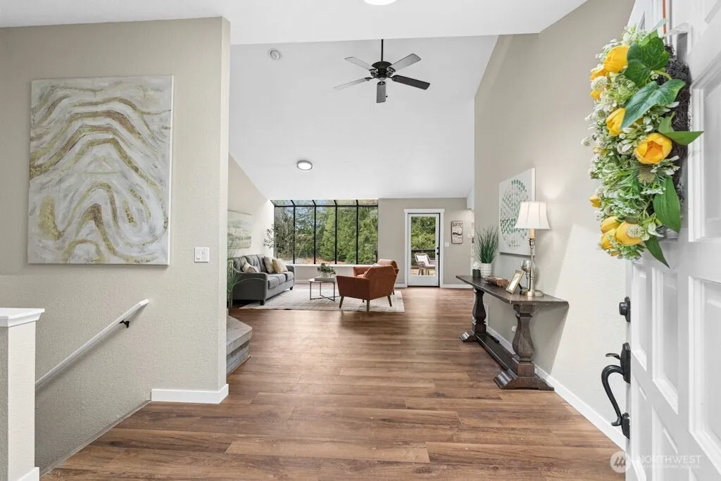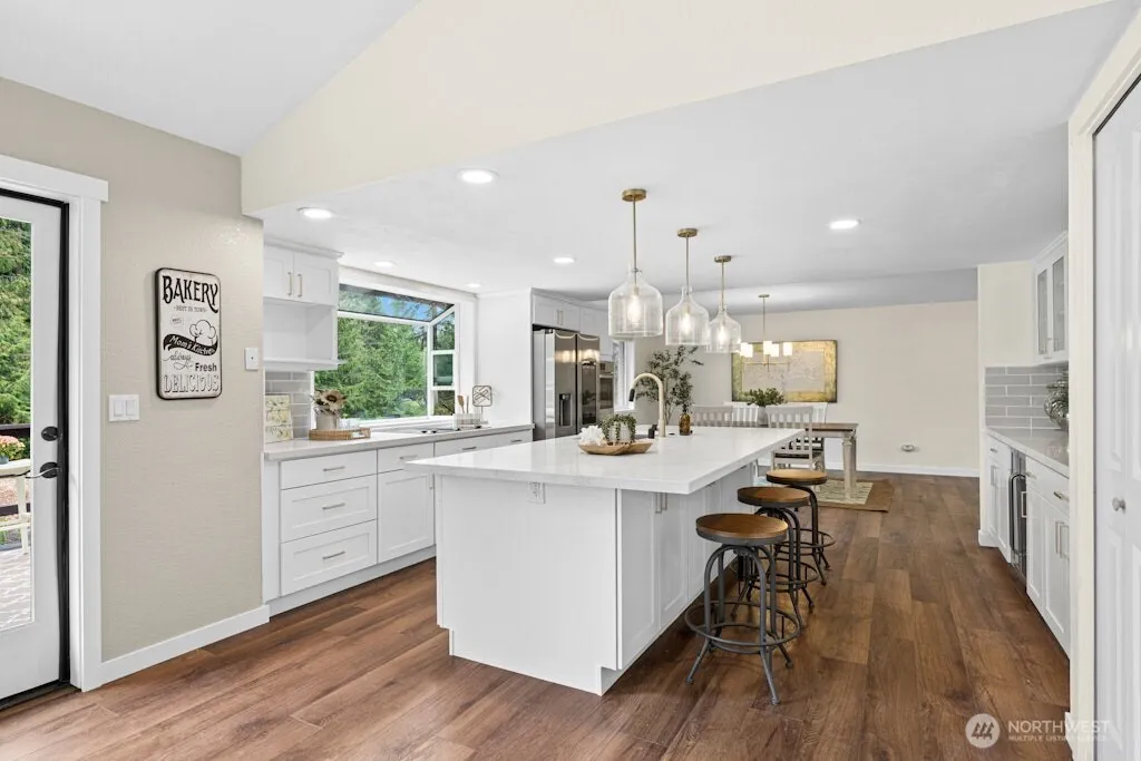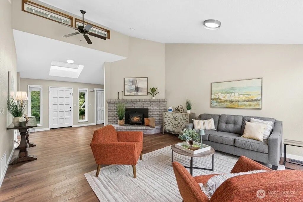 An exceptional offering in Maplewood Estates—one of the area’s most sought-after, well-maintained acreage communities—featuring just 93 homes set along peaceful, tree-lined streets where opportunities like this are rare. Set on 2.5+ acres of level land, this beautifully updated, light-filled home offers skylights, vaulted ceilings, and an open layout designed for both everyday living and memorable gatherings. The grounds invite a lifestyle many dream of—host under the open sky, create your own hobby farm, or simply enjoy the space and privacy. Mature landscaping includes garlic, herbs, raspberries, dahlias, and even Christmas trees, bringing beauty through every season. Additional features include a new chicken coop and a versatile barn with 2 horse stalls (room for 2 more), plus an upper-level studio ready for your vision. Over $200K in thoughtful upgrades: new 50-year roof, windows, doors, trim, paint, and flooring throughout. The remodeled kitchen features quartz countertops, an oversized island, wine refrigerator, and double ovens. Updated bathrooms include a spa-inspired primary suite with soaking tub. A private MIL suite with separate entrance, kitchenette, and washer/dryer offers flexibility for multi-generational living or rental income. Peaceful, private, and surrounded by a true sense of community—yet just minutes to schools, parks, trails, and downtown Issaquah, within the award-winning Tahoma School District. Welcome home.