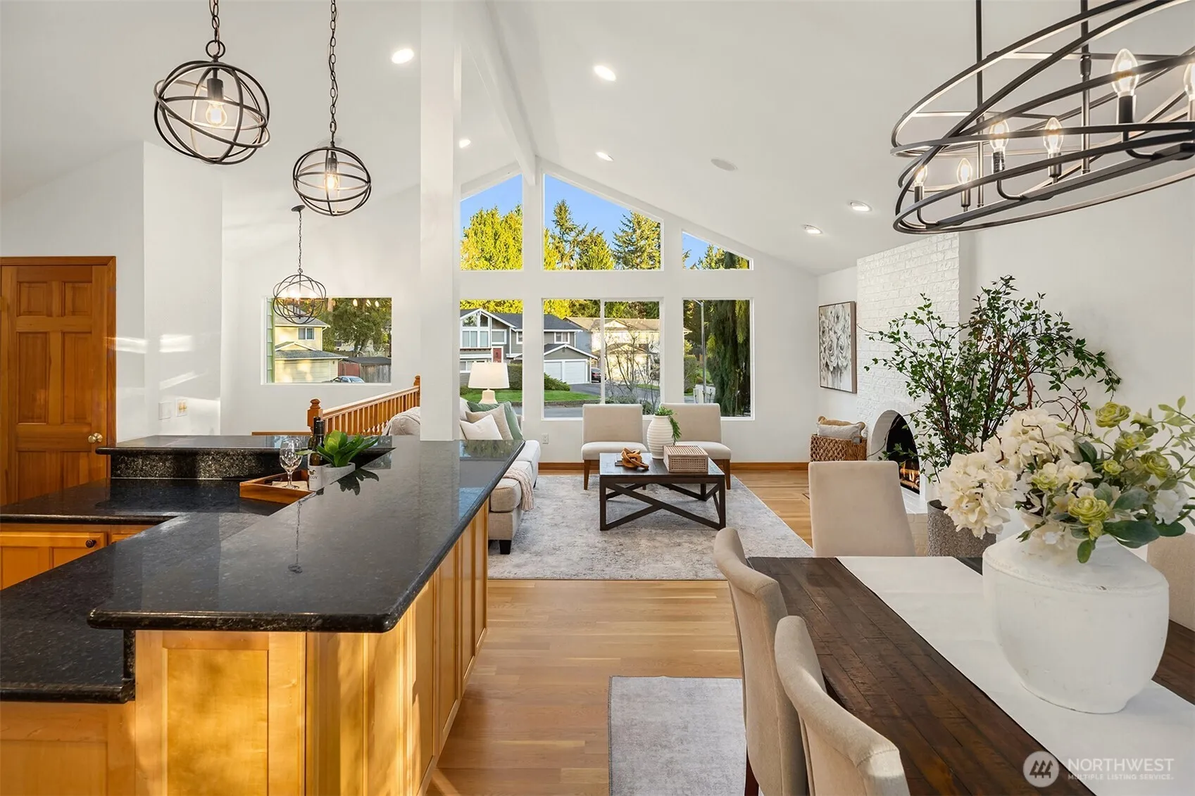 Tucked quietly at the end of a cul-de-sac on nearly a third of an acre, a vibrant green lawn welcomes you home to a space that feels both open and private. Inside, vaulted ceilings and a wall of windows draw the outside in, with natural light dancing across hardwood floors. The living area is anchored by an elevated brick fireplace and hearth, balanced by the clean vertical lines of the great room. The kitchen integrates seamlessly, wrapped in warm wood tones, with a natural flow that keeps everyone connected. It is the perfect space for entertaining and where conversations flow easily around the countertop bar. Step onto the deck and the experience shifts. Sunlight filters through the trees as the space opens to an expansive level backyard with room to play, gather, or simply unwind. The downstairs offers a relaxed gathering space, with a fireplace, access to the lower patio, a fourth bedroom, office, and bath and laundry. Extensively updated and thoughtfully maintained, the home reflects a true move-in ready experience. Improvements include a full interior repaint, refinished hardwood floors, new carpeting, remodeled primary and secondary bathrooms, updated lighting, exterior paint, and a new 30-year composite roof. The work has been done, so you can move in and begin living. Everyday conveniences are abundant and nearby. Easy access to I-5 / 405 and the light rail for easy and convenient for commuting. Close to downtown Edmonds waterfront shops and dining.