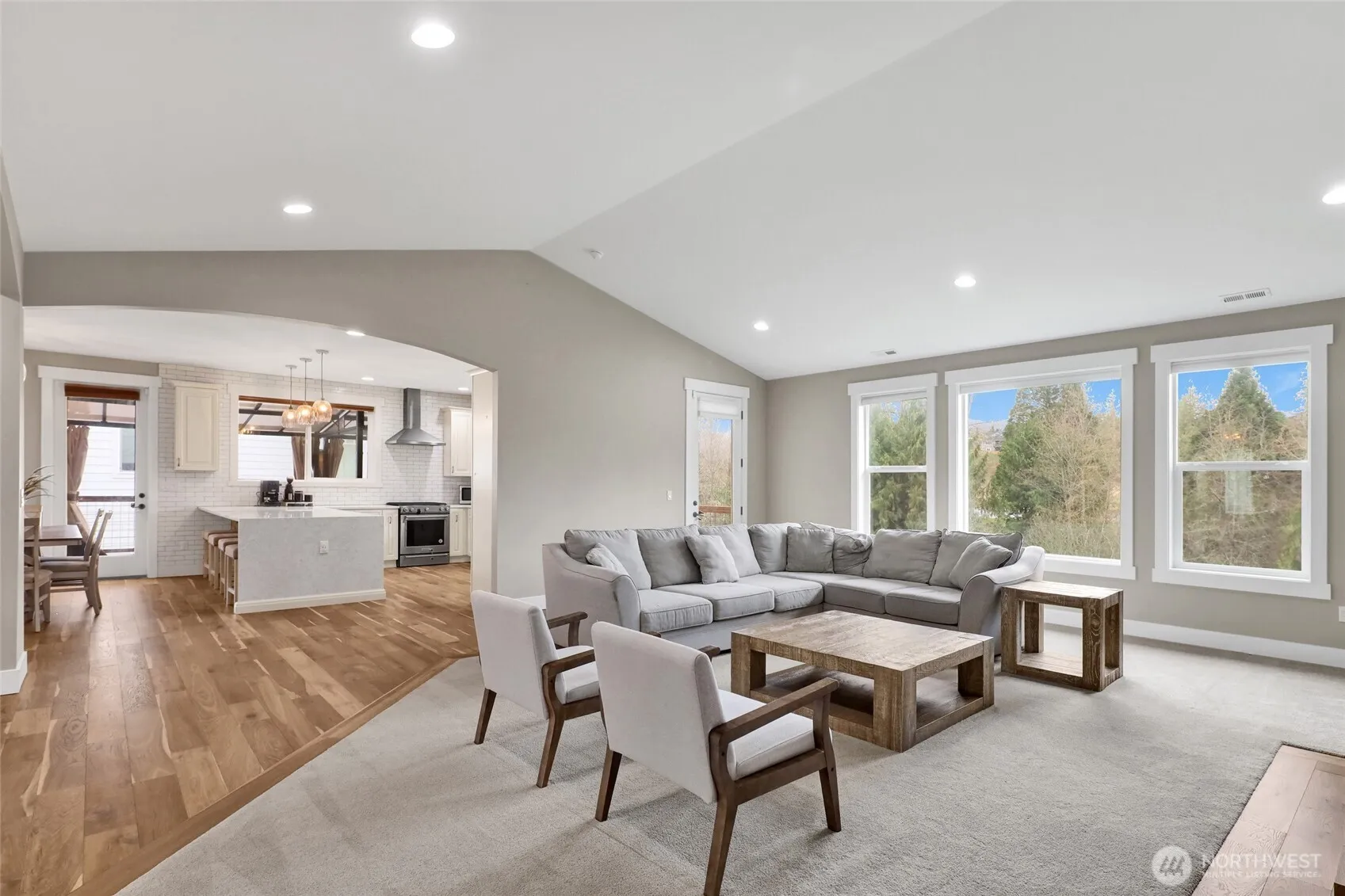 Elevated living awaits in this exceptional custom residence nestled within the coveted Nookachamp Hills community. Perfectly sited on a beautifully sized half-acre lot, this nearly 5,000 sq ft home offers refined comfort, generous scale, and timeless design throughout. Featuring 4+ bedrooms and 2.75 baths, the layout is both functional and impressive. At the heart of the home, a designer chef’s kitchen showcases sleek waterfall quartz countertops, premium finishes, and an effortless connection to the expansive great room, anchored by a dramatic stone fireplace. The main-level primary suite is a true retreat, complete with a spa-inspired ensuite and soaking tub designed for relaxation. The lower level is an entertainer’s dream, offering a sprawling living space with wet bar—ideal for hosting, recreation, or multi-generational living. Dual A/C systems ensure year-round comfort across all levels. Enjoy serene mountain views from the front of the home, with nearby access to scenic walking paths around Otter Pond. Just minutes to the charm, dining, and amenities of downtown Mount Vernon, this residence offers a rare blend of privacy, luxury, and convenience in one of the area’s most sought-after neighborhoods.