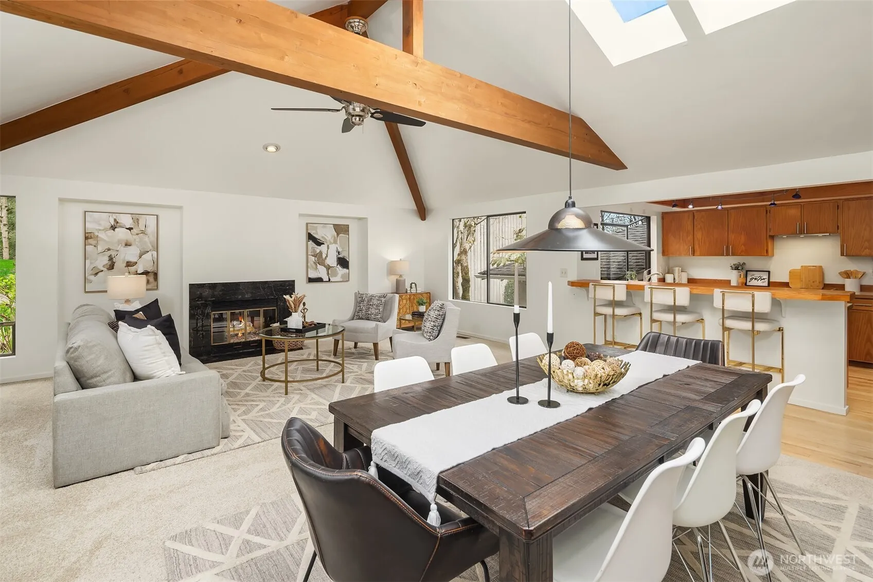 Tucked into Redmond’s desirable Education Hill neighborhood, this tri-level home combines generous space with thoughtful updates and a prime location. Fresh interior and exterior paint, brand new flooring, and refreshed landscaping create a crisp, move-in-ready feel. The main level features a bright living room that opens to the dining area, creating a seamless flow for daily living and entertaining. A heat pump ensures efficient heating and cooling throughout the year. Upstairs, you’ll find three bedrooms, including a spacious primary suite with its own ensuite bath, along with a 3/4 bath serving the additional bedrooms. The lower level features an expansive bonus room with soaring ceilings, ideal for a media space, home office, or flexible living area. Set on a large lot with a generous yard and mature Northwest landscaping, the property backs to a substantial city-owned greenbelt, offering exceptional privacy and a peaceful natural backdrop. Enjoy easy access to parks, top-rated Lake Washington schools, shopping, dining, and major commuter routes, including I-405 and SR-520. Pre-inspected.