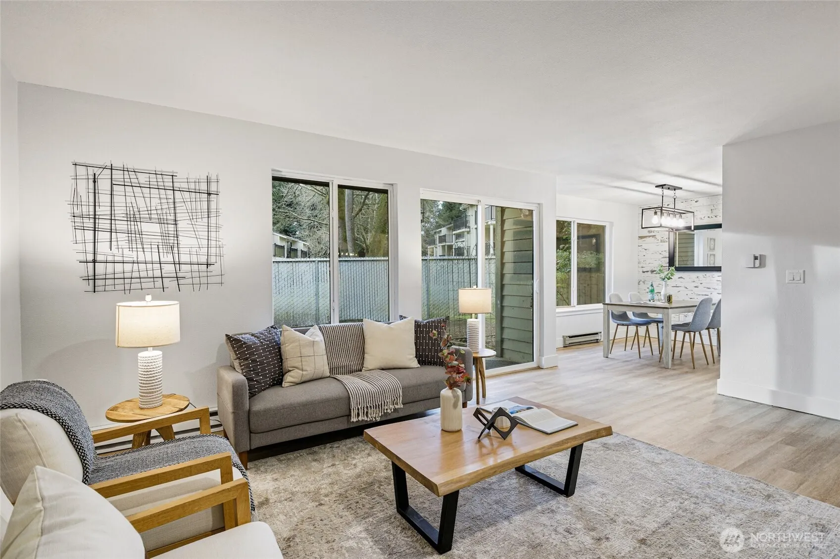 Welcome to this beautiful ground-floor condo in the highly desirable Totem Lake neighborhood. Enjoy effortless, no-stairs living and your own private backyard in a home that perfectly balances style and convenience. Many updates in 2025 including fresh paint, new flooring, and a modern kitchen with stainless steel appliances. The open-concept layout flows seamlessly from the kitchen to the living area—ideal for entertaining or relaxing. The primary suite includes a private en-suite bathroom, while a second bedroom and full bath are conveniently located down the hall. With ample storage, thoughtful upgrades, and a prime location just minutes from Totem Lake Village shopping and I-405, this condo offers modern living with ease and comfort.
