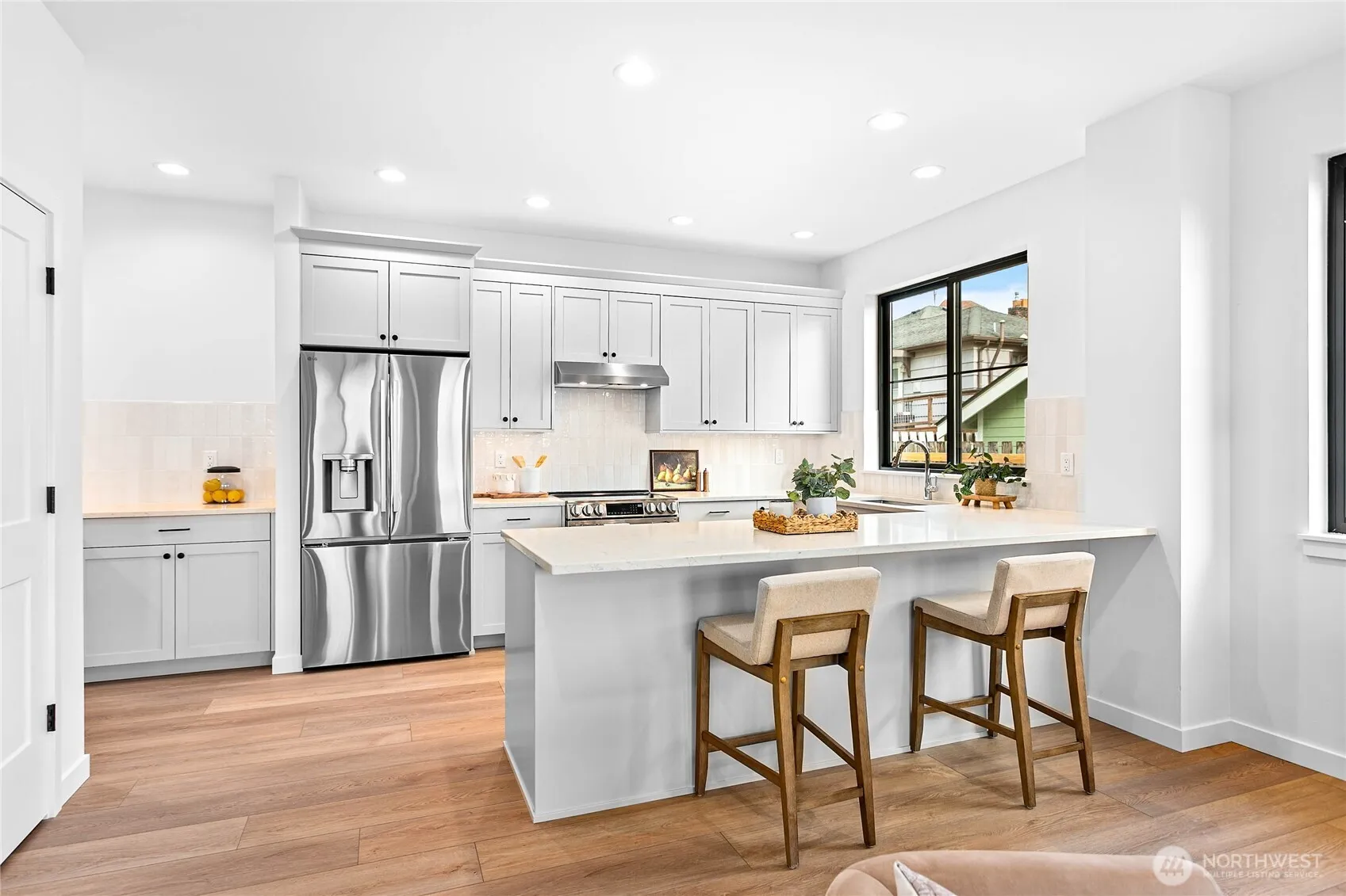 Experience the ease of brand-new, low-maintenance living in this beautifully crafted condo by Janzen Custom Builders—estimated for completion next month. Why rent when you can own a thoughtfully designed home with upscale finishes throughout? This stunning residence blends timeless charm with modern style, featuring a classic red-brick exterior and wide-plank LVP flooring. The bright, south-facing living area is filled with natural light and showcases beautiful Mt. Baker views. An open-concept layout flows into a sleek kitchen with stainless steel appliances and quartz countertops—perfect for entertaining. Upstairs offers two comfortable bedrooms and a convenient laundry area. Enjoy modern efficiency with a Navien on-demand water heater and a Bosch high-efficiency heat pump. Each unit also includes additional exterior storage on the south side. Located just steps from downtown Lynden’s shops, cafés, and restaurants, this home captures the best of small-town living with modern comfort.