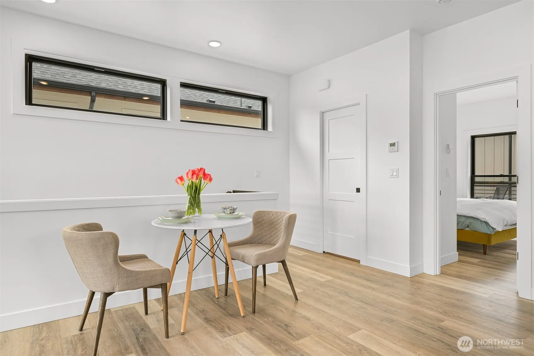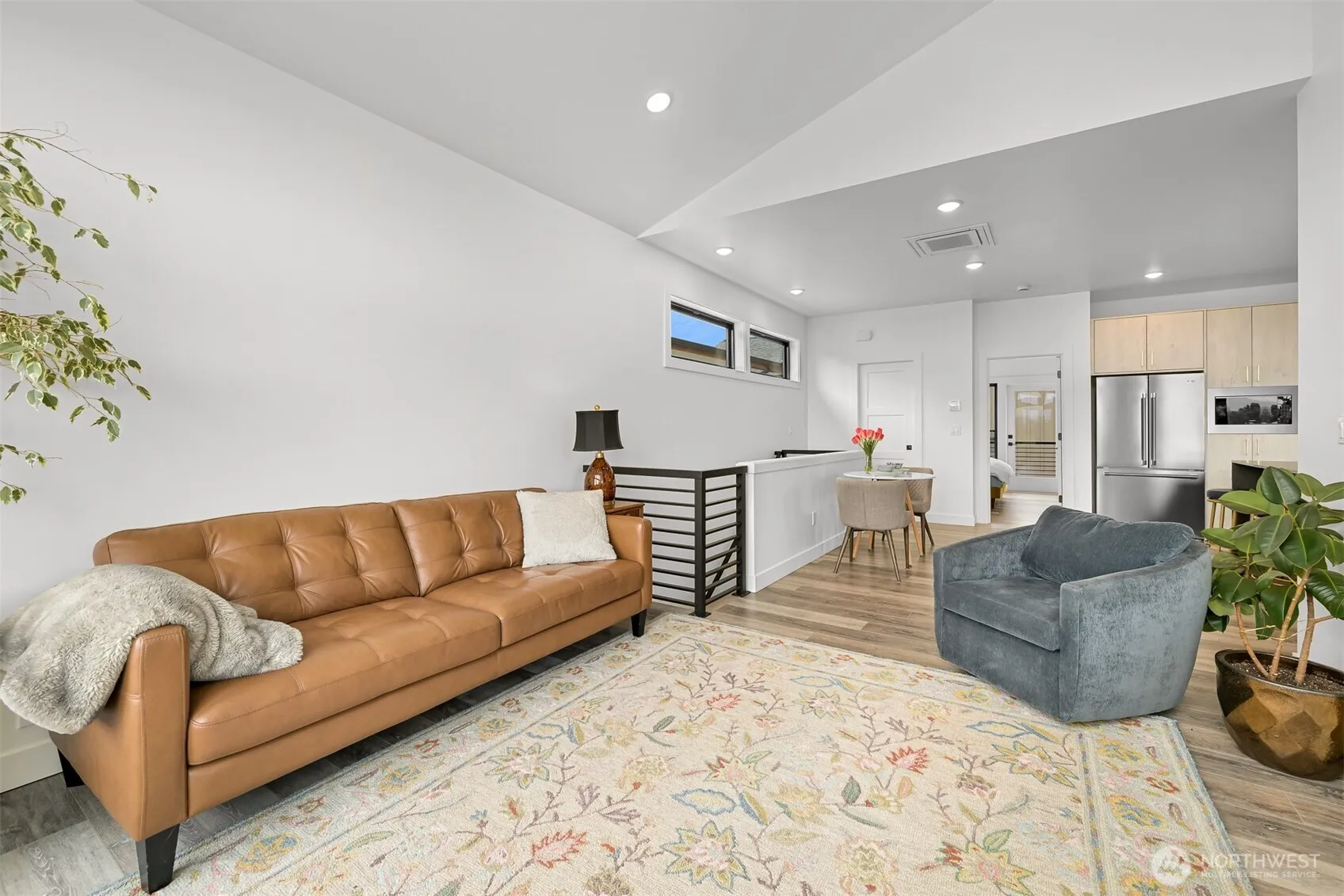 Discover River-Walk, a thoughtfully designed NW Washington community known for its upscale finishes, scenic surroundings, low maintenance living, and walkable connection to charming downtown Lynden. Enjoy easy access to local restaurants, boutique shops, and everyday conveniences, all just a short stroll or bike ride away. Situated on the desirable east side, this modern style home offers 1,428 sq. ft. of comfortable living with numerous upgrades throughout. Upstairs you’ll find the primary suite with its own laundry, and beautiful living space flooded with natural light. The gourmet kitchen shines with quartz countertops, custom cabinetry, stainless steel appliances, and an expansive waterfall island, perfect for both everyday living and entertaining. The main level features the second bedroom and bathroom with a second laundry, and a bonus space with kitchenette, providing opportunities for multigenerational living or a great home office set up! Take in the beautiful view from the upper balcony deck, unobstructed and preserved by the green space in front of the home. Truly turn-key for anyone seeking the perfect blend of modern, upscale amenities with the slow pace of small town living.