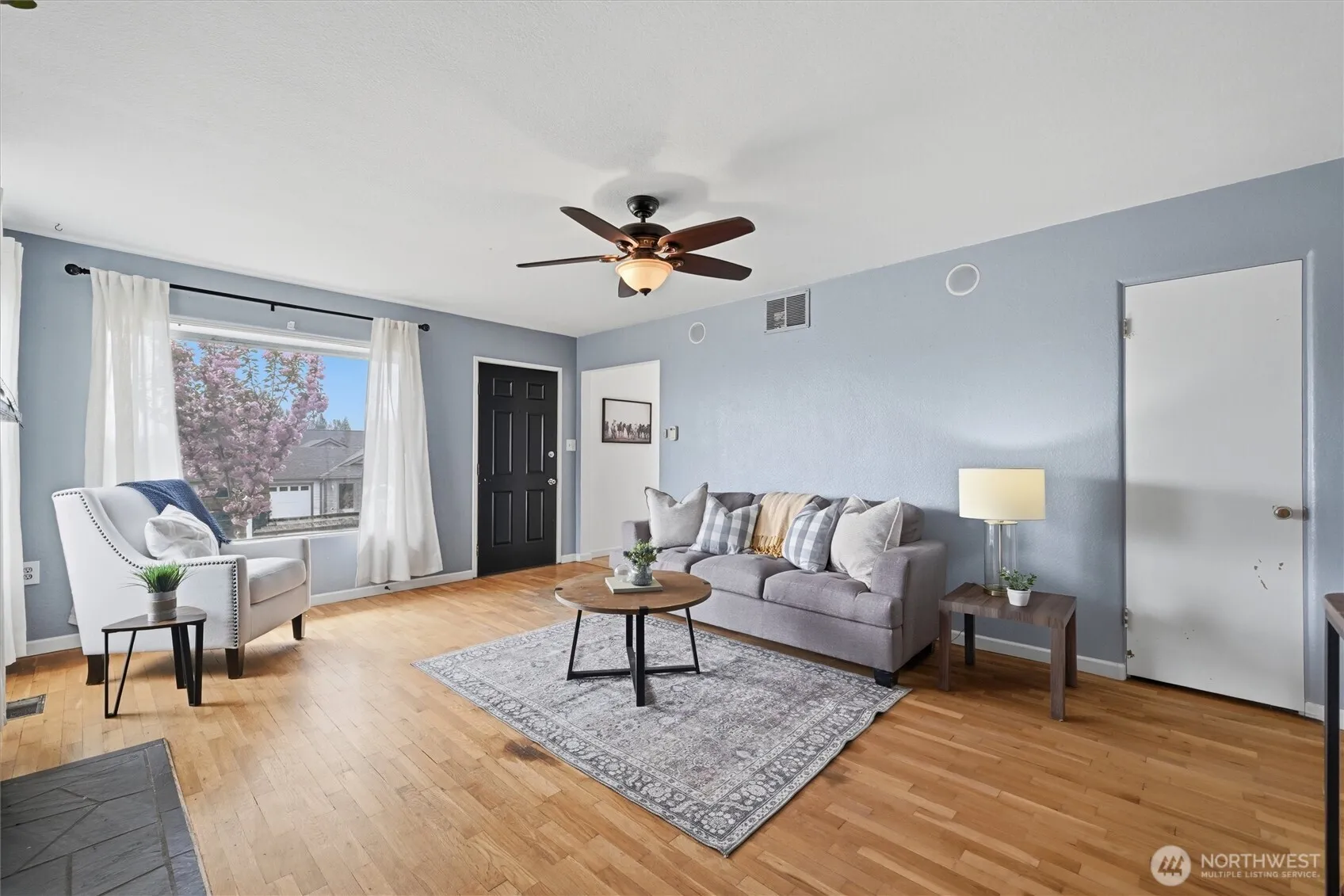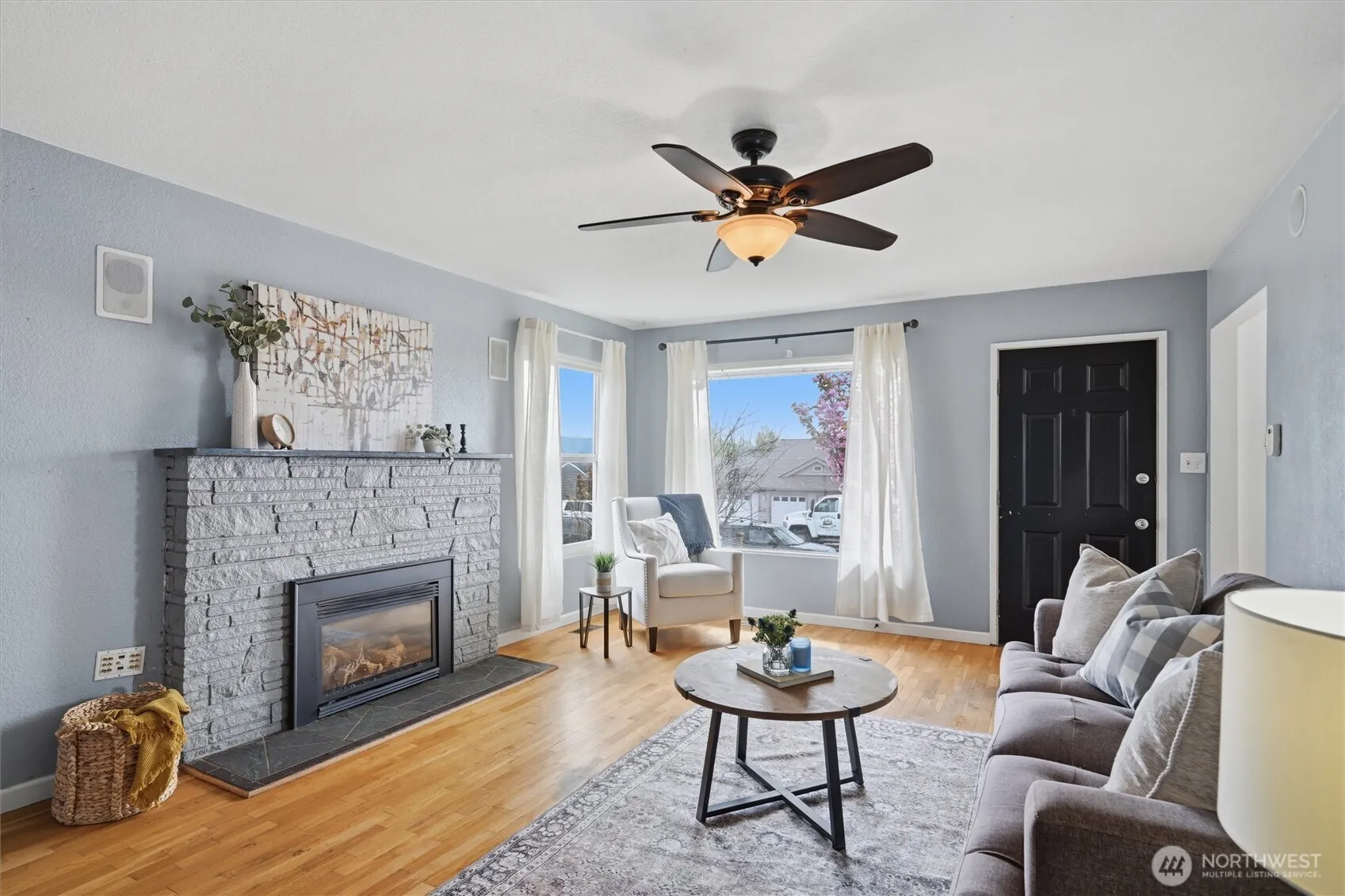 Mid-century single-story home with basement and Mount Baker and foothill views. The main level includes 3 bedrooms and 1.75 baths. Downstairs is a 4th bedroom, cold storage, storage closet, additional finished room, and a bonus room. This home is a solid structure, ready for updates, providing an opportunity to add value while maintaining its mid-century character. Brand new roof in 2024, gas fireplace, flowerbeds, garden shed, 1 car carport, and a covered patio for outdoor use. Alley access provides extra parking options and easy access to the 576 sq ft detached shop, ideal for storage, projects, or workspace. This is a walkable home to downtown Lynden with many shopping, dining and service options!
