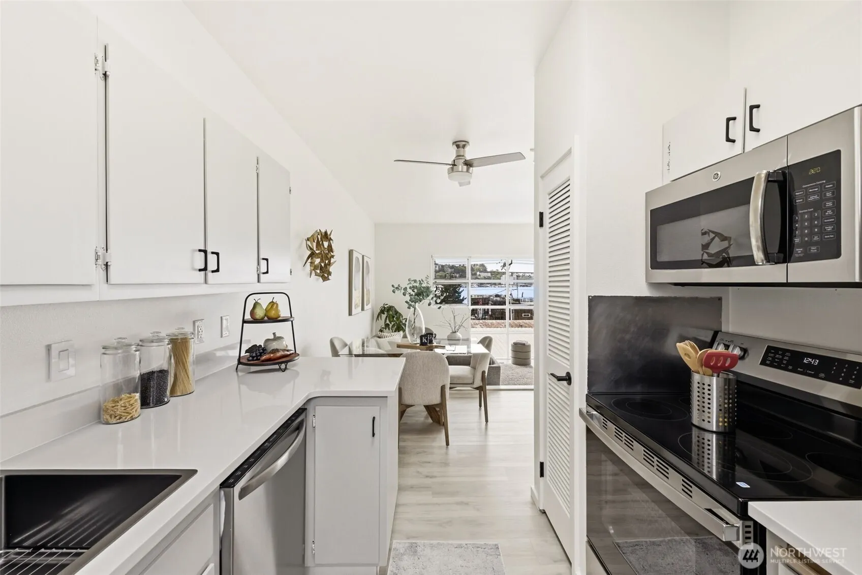 Eastlake waterfront is one of the city’s most treasured & quaint neighborhoods. Come and see how locals experience a small-town beach life all while being in the heart of the city. Several beach pocket parks allow for sunbathing, SUP & kayak launch, bocce ball tournaments & picnics. Rogers Playfield serves as the hub for dog & playground aficionados alike. Pete’s Market is just a short walk away past the houseboats for your essentials and an unrivaled wine selection. This rare & coveted floorplan is designed for enjoyment, inside & out. Unwind or host a July 4th fireworks watch party on the expansive rooftop deck. Western-facing views provide longer sunshine & exquisite sunsets. The open-concept top floor living ensures constant & dynamic daily views from early AM crew practice, summer sailboat races, Xmas ship parades, seaplanes & more, all from the cozy seat in your home or on your roof top deck. The TH has a mini-split heating/AC system which will keep you comfortable all year round. Just off the garage is your laundry room opening up to your private, fenced garden oasis with a side yard for housing SUPs, kayaks or a dog run. The garage has room for your car and storage plus an add’l designated parking spot in front of the unit for you or a guest. This remodeled townhome is well maintained with premium laminate wood flooring, quartz counters, new stove/oven, remodeled bathrooms and a new flat roof.