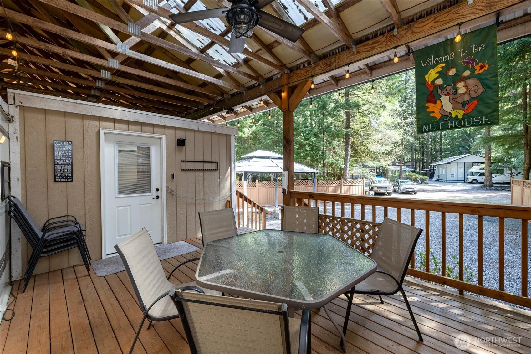 Clean, comfortable and affordable! Welcome to Paradise Lakes Country Club! This recreational property is your perfect getaway. Top-of-the-line 1995 fifth-wheel trailer complete with hardwood floors, cabinet lighting, and carpeted storage under the floor with access from inside the trailer. The addition is being used as a second bedroom. Property also boasts a mudroom with an extra fridge and freezer and a huge covered deck! Sleeps 10! Check out the fantastic covered firepit area and this property also has great outside storage. Fenced on 3 sides, this beautiful property is turnkey and ready for new adventures. This great community has an indoor pool, sports court, exercise room, comfort stations, playgrounds, & more. Limited to 120 days of use per year.