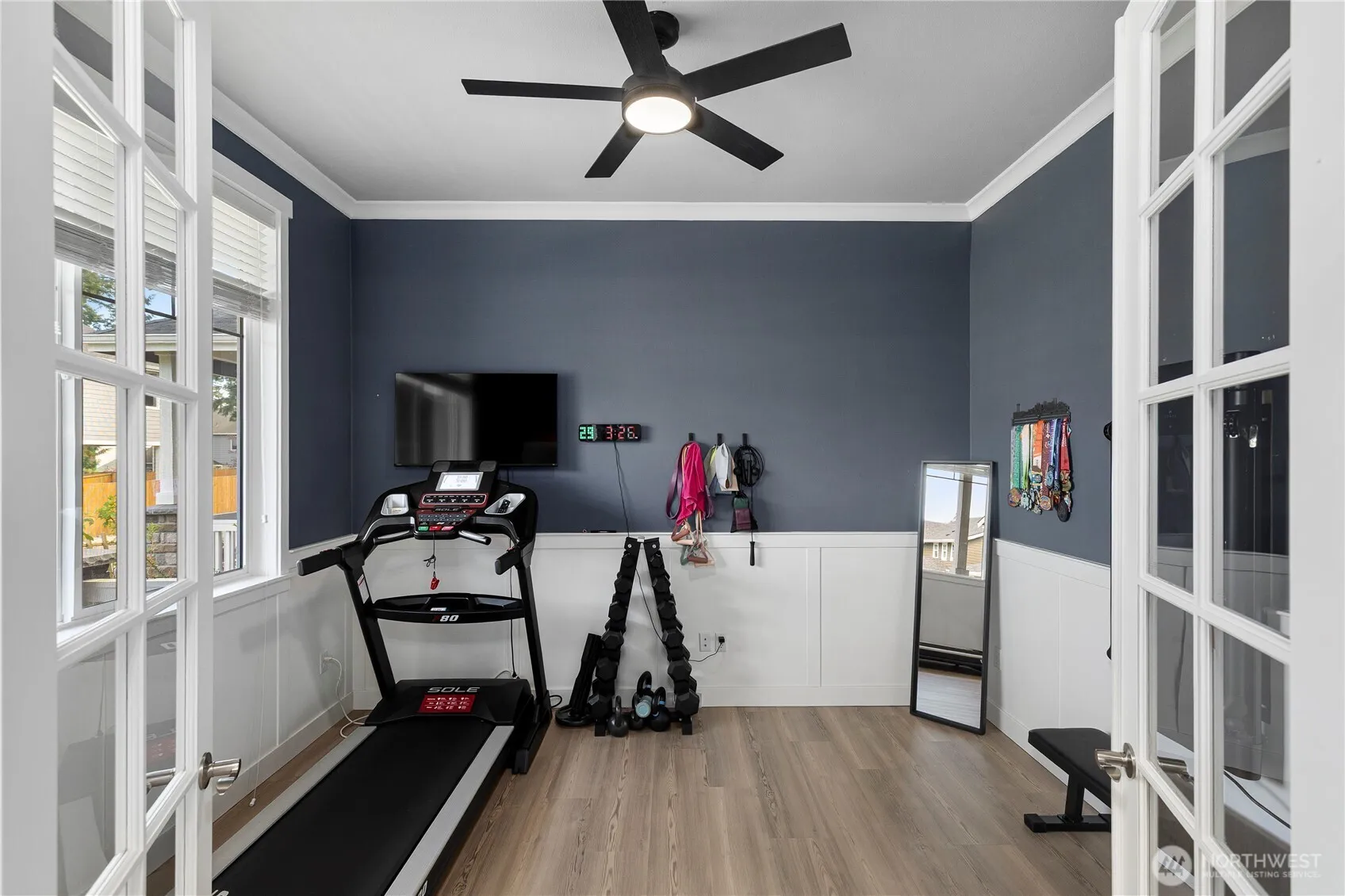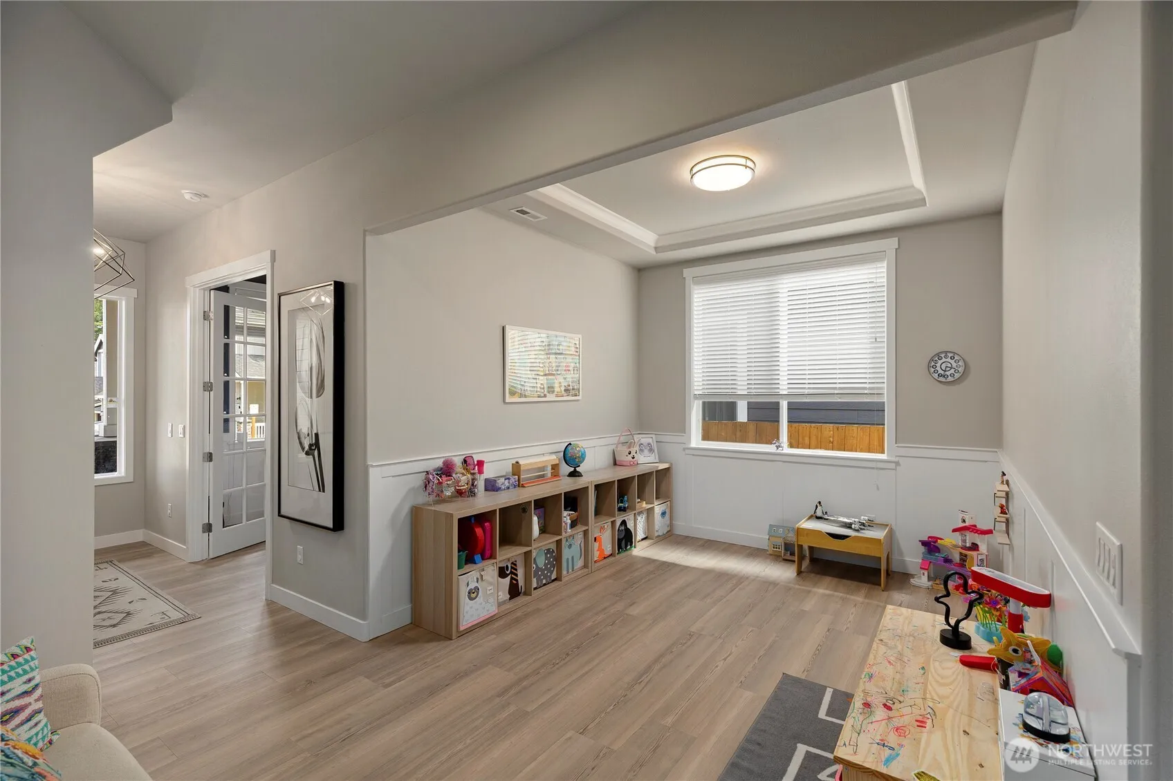 Come see this well maintained 4 Bedroom 2,816 sq ft home. Conveniently located just minutes from Silverdale shopping, dining, and everyday amenities. The main level features 10-ft ceilings, a dedicated office, a great room with custom built-ins, and a cozy gas fireplace. The fully fenced backyard features a large covered patio and terraced garden area. Kitchen includes a quartz center island, stainless appliances and pantry. Upstairs, the primary suite includes a gas fireplace, soaking tub, separate shower, and walk-in closet. The three additional bedrooms each have their own walk-in closets. A second full bathroom upstairs and loft provide added flexibility. Recent updates include added heat pump in 2022, LVP flooring installed in 2025, fully paid-off solar, and a Level 2 EV charger. Easy access to local bases and commuting routes.