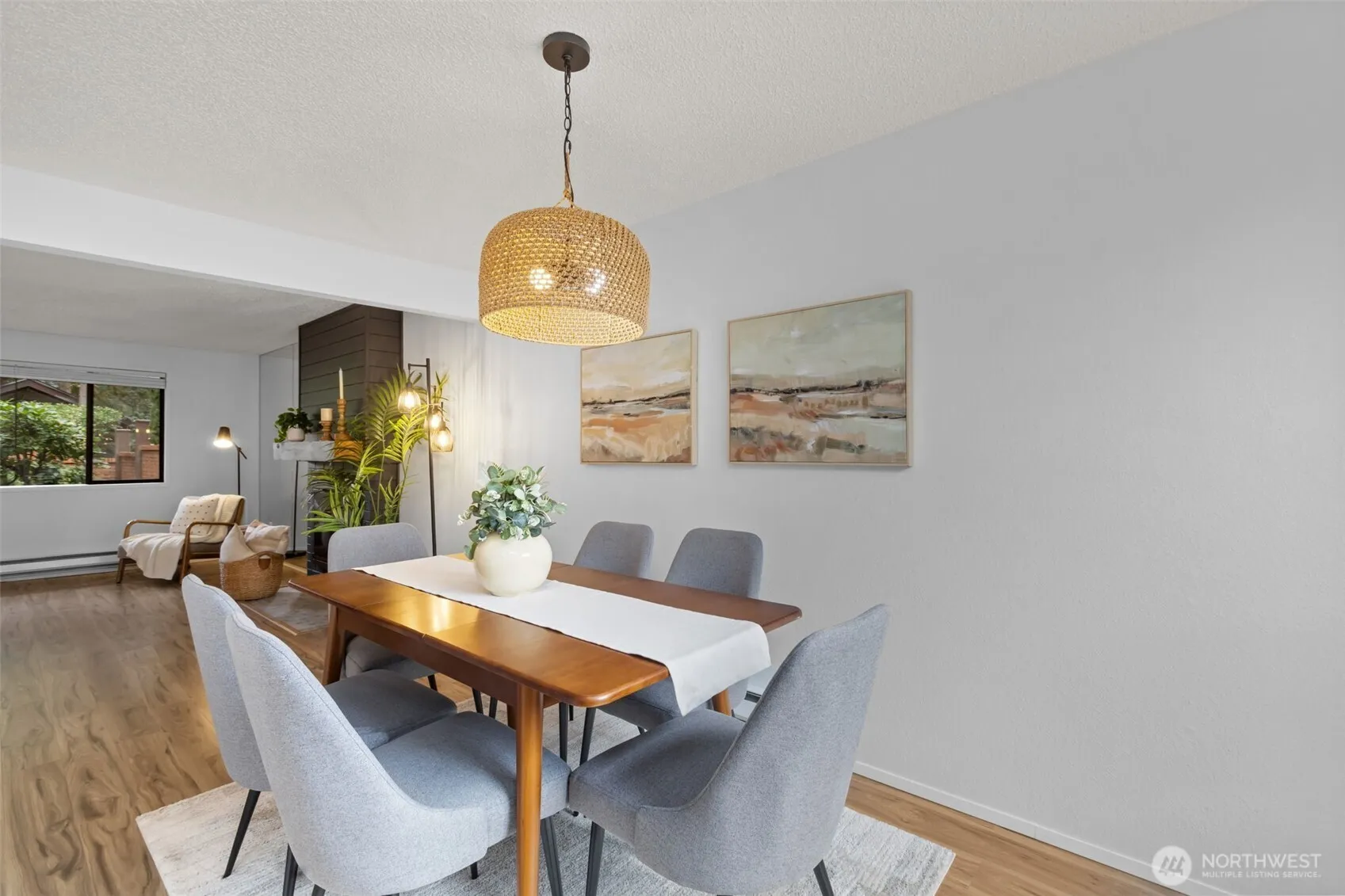 Experience this peaceful townhome style residence at San Souchi. Corner unit, sharing just one wall, perfectly situated near the serene trails of Robinswood Community Park. Gated, lush peaceful grounds featuring koi pond and sidewalks. Thoughtful cosmetic updates include updated luxury vinyl plank flooring, paint and carpet. Step inside to discover a thoughtfully laid-out 2 bed/1.5 bath home featuring 1,080 sq ft of comfortable living space. The interior boasts a bright and inviting living area, an efficient kitchen boasting a big bright window, quartz counters and stone tile backsplash. Lovely functional and surprisingly large dining space perfect for everyday living or entertaining guests. Abundantly large bedrooms and closets upstairs. Walk in shower, updated counter vanity. Directly outside you back patio, you’ll appreciate the convenience of a 2-Car Garage. The property offers a manageable patio—ideal for relaxing weekends, small plants, and creating your own outdoor retreat. Additional exterior storage right outside your door. The location truly sets this home apart. Enjoy easy access to parks, walking trails, shopping, and major commuter routes, all while being tucked into a peaceful neighborhood. Well run HOA and top rated schools make this home an attractive option for home buyers. Tremendous access for Bellevue College and Lake Hills amenities as well.