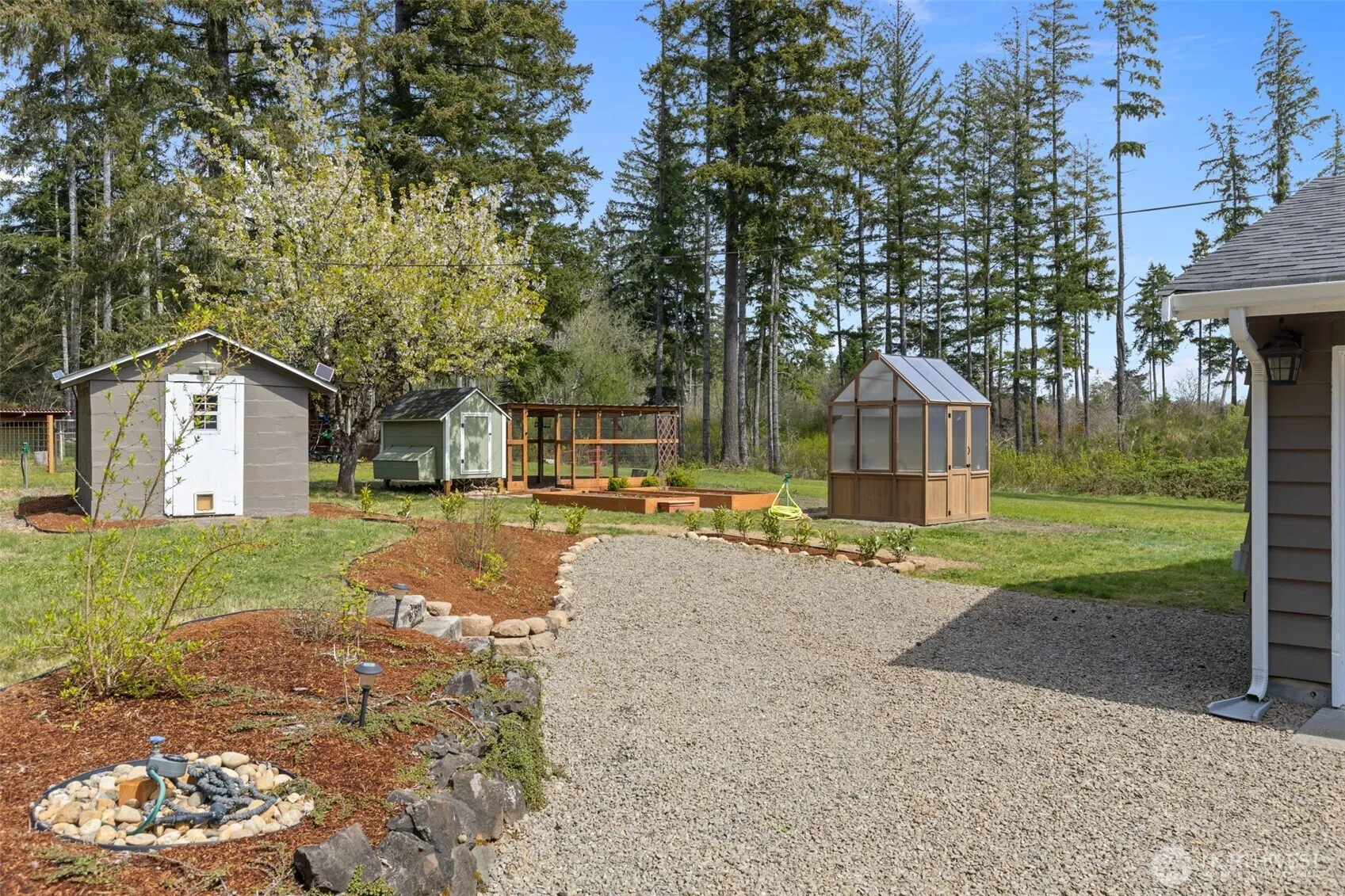 Experience the best of Belfair living with this beautiful single-story home set on 4.75 mostly flat, usable acres just minutes from town and the scenic Hood Canal. Recently refreshed with new exterior paint, this property offers standout curb appeal along with the perfect blend of privacy and convenience. Inside, the thoughtfully updated 4-bedroom home features a bright open-concept layout with vaulted ceilings and skylights, a spacious kitchen with abundant cabinetry, all appliances included and a walk-in pantry. Two separate living areas offer flexibility for furniture and french doors lead to an expansive 1,500+ sq ft patio with a covered gazebo, ideal year round BBQ or enjoying peaceful Pacific Northwest evenings. Designed for the Belfair lifestyle, the property includes a greenhouse, chicken coop, multiple sheds, and plenty of cleared, fenced land for hobbies, animals and garden space, while mature trees provide natural privacy. Additional highlights include 2.25 bathrooms with gorgeous tilework, air conditioning, 3-car garage with EV prewire & RV parking. If you’re seeking space, privacy, and easy access to outdoor recreation near the water, this move-in ready property delivers it all.