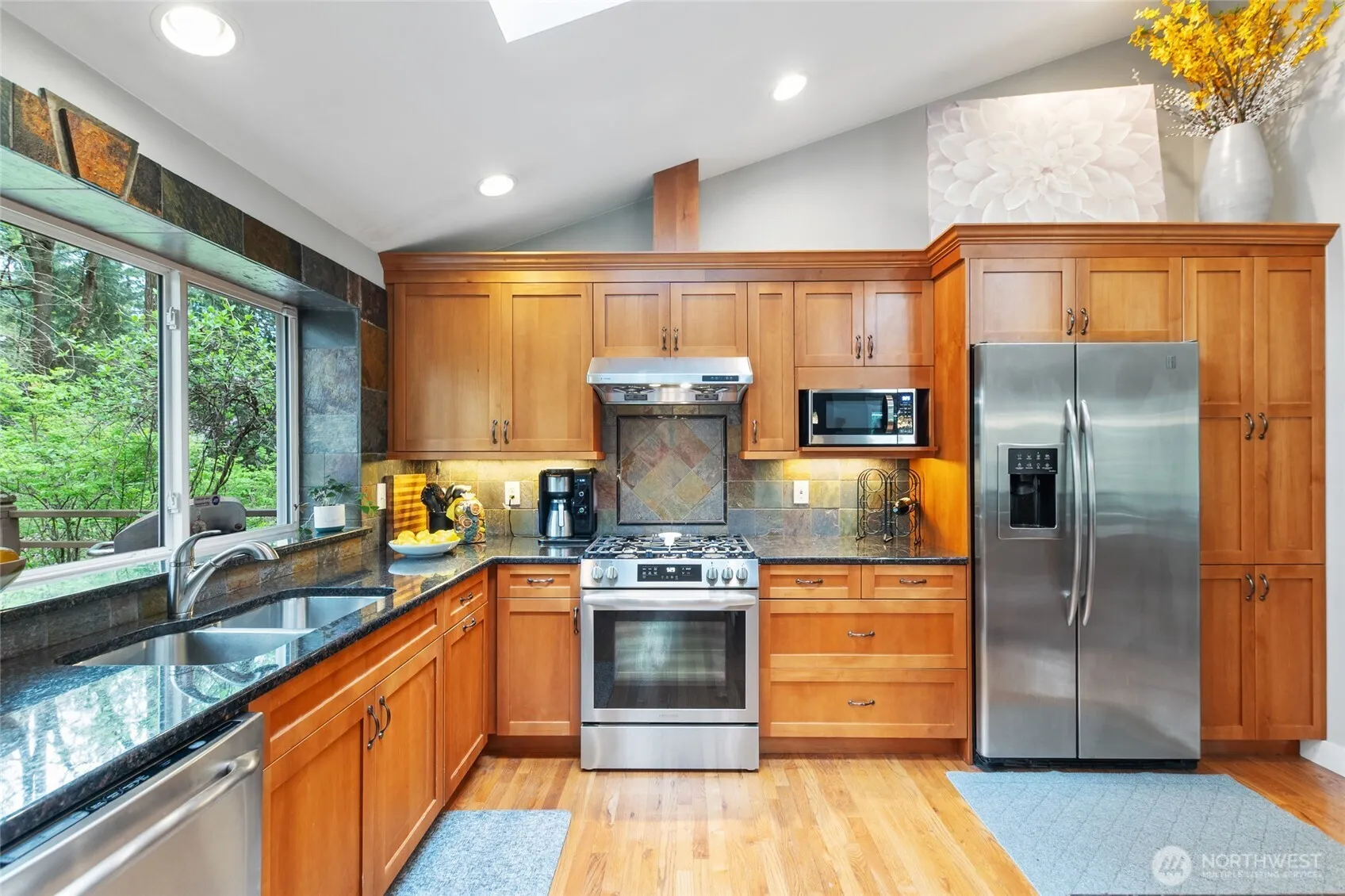 Set on a shy acre of beautifully landscaped grounds, this private Bothell retreat offers the space, comfort, and lifestyle you’ve been waiting for. Surrounded by mature, park-like landscaping, the property creates a rare sense of seclusion while still keeping you close to everything. Step inside to a light-filled great room with soaring vaulted ceilings that instantly elevates the space. The open island kitchen flows effortlessly into the main living area and formal dining room, ideal for everyday living and hosting alike. The expansive primary suite is your personal escape, featuring a large walk-in closet & a well-appointed ensuite with large tiled step in shower. Two additional well-sized bedrooms and a full bath provide flexibility for guests, work-from-home setups, or growing households. Downstairs, a spacious utility room with added half bath enhances everyday convenience, while the oversized two-car garage offers ample storage and workspace. Outside, the lifestyle continues. Enjoy your own sport court—perfect for basketball or pickleball—plus expansive outdoor areas ideal for entertaining, play, or simply relaxing in your private setting. Located within the highly regarded Northshore School District and offering easy access to major commute routes, this home delivers the perfect balance of privacy, space, and convenience. Opportunities like this—nearly an acre, usable outdoor space, and a home designed for both comfort and connection—are rare.
