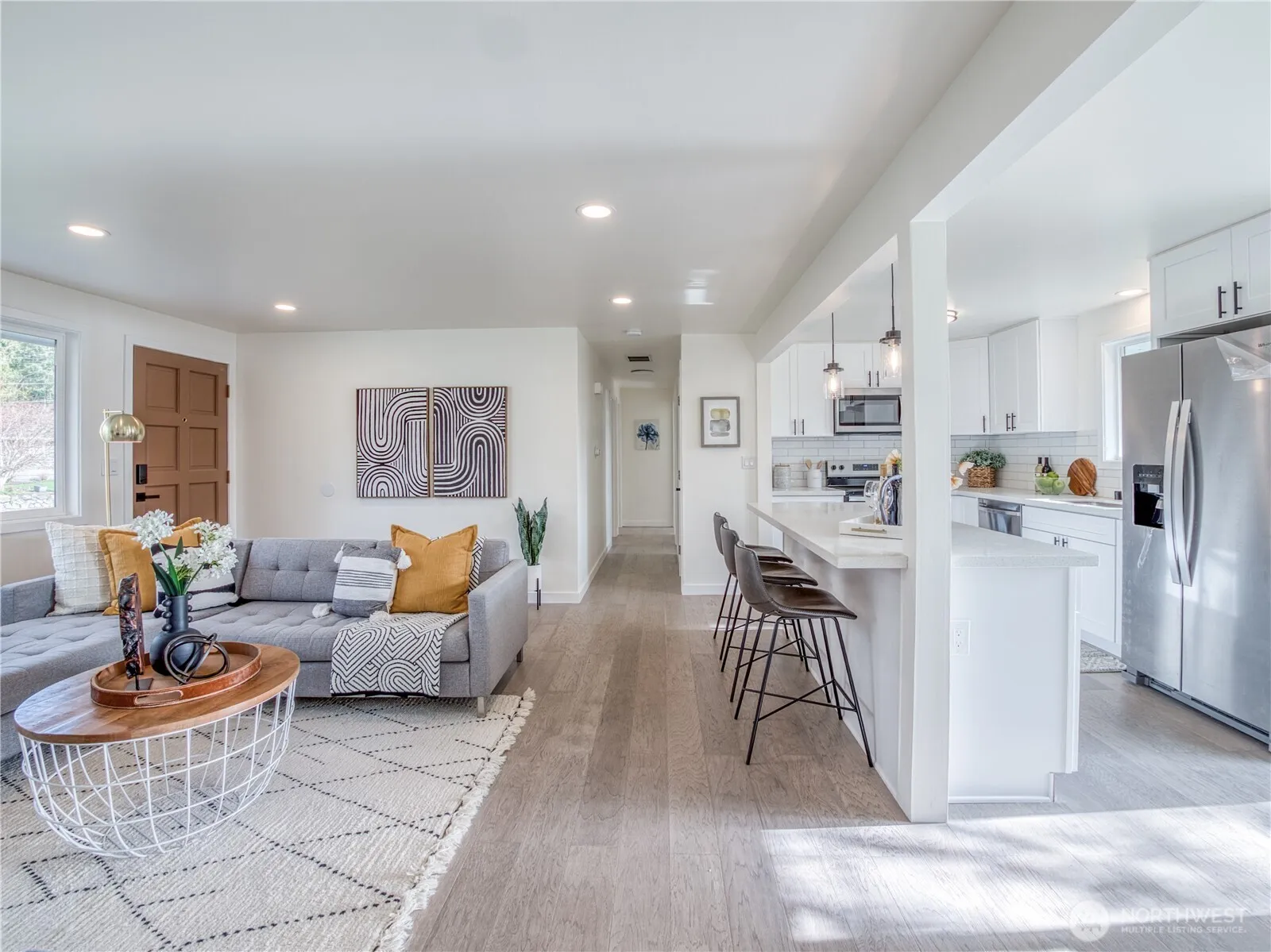 Completely remodeled and truly move-in ready, this charming 3-bedroom, 1-bath rambler offers comfortable single-level living with a fresh, modern feel throughout. Situated on a desirable corner lot, the property features fully hooked-up RV parking with a separate entrance, providing added flexibility and convenience. The open-concept layout features a bright living room and a cozy family room, each with its own fireplace, creating warm and inviting spaces for everyday living and entertaining. The updated kitchen flows seamlessly into the dining area and showcases quartz countertops and all-new appliances. Extensive upgrades include new windows, new flooring, a new crawl space installation, and a new roof, offering peace of mind for years to come. Thoughtful improvements throughout make daily living easy and low-maintenance. Ideally located with quick access to I-405 and SR-522, and close to transit options including Canyon Park Park & Ride. Enjoy nearby outdoor Parks, trails, and sports fields, all just minutes from shopping and dining. Highly regarded Northshore School District, this home perfectly combines comfort, convenience, and a prime location in one turnkey package. A must-see!!
