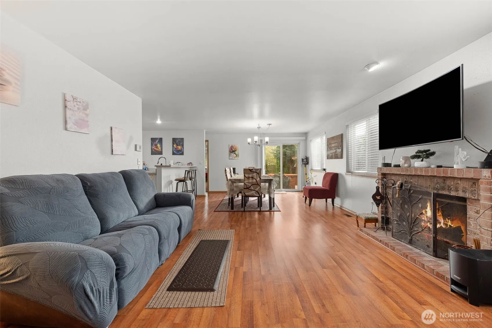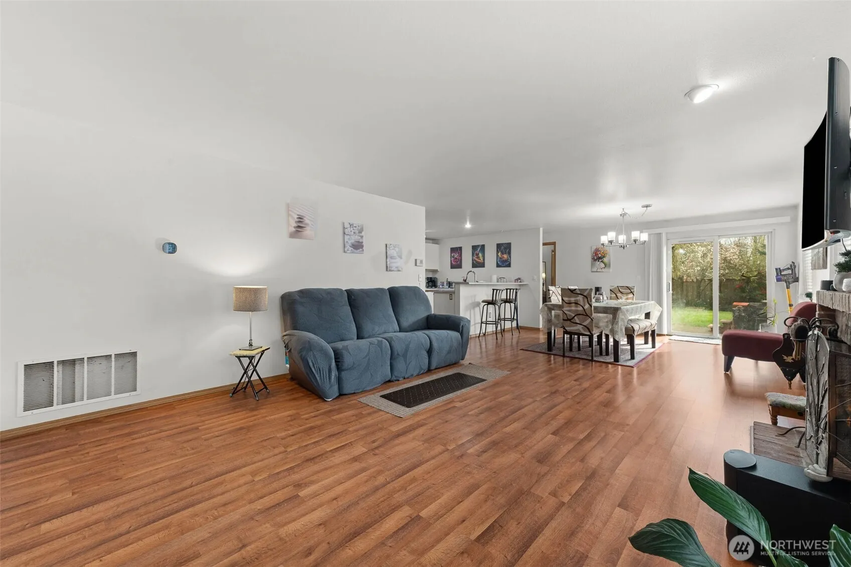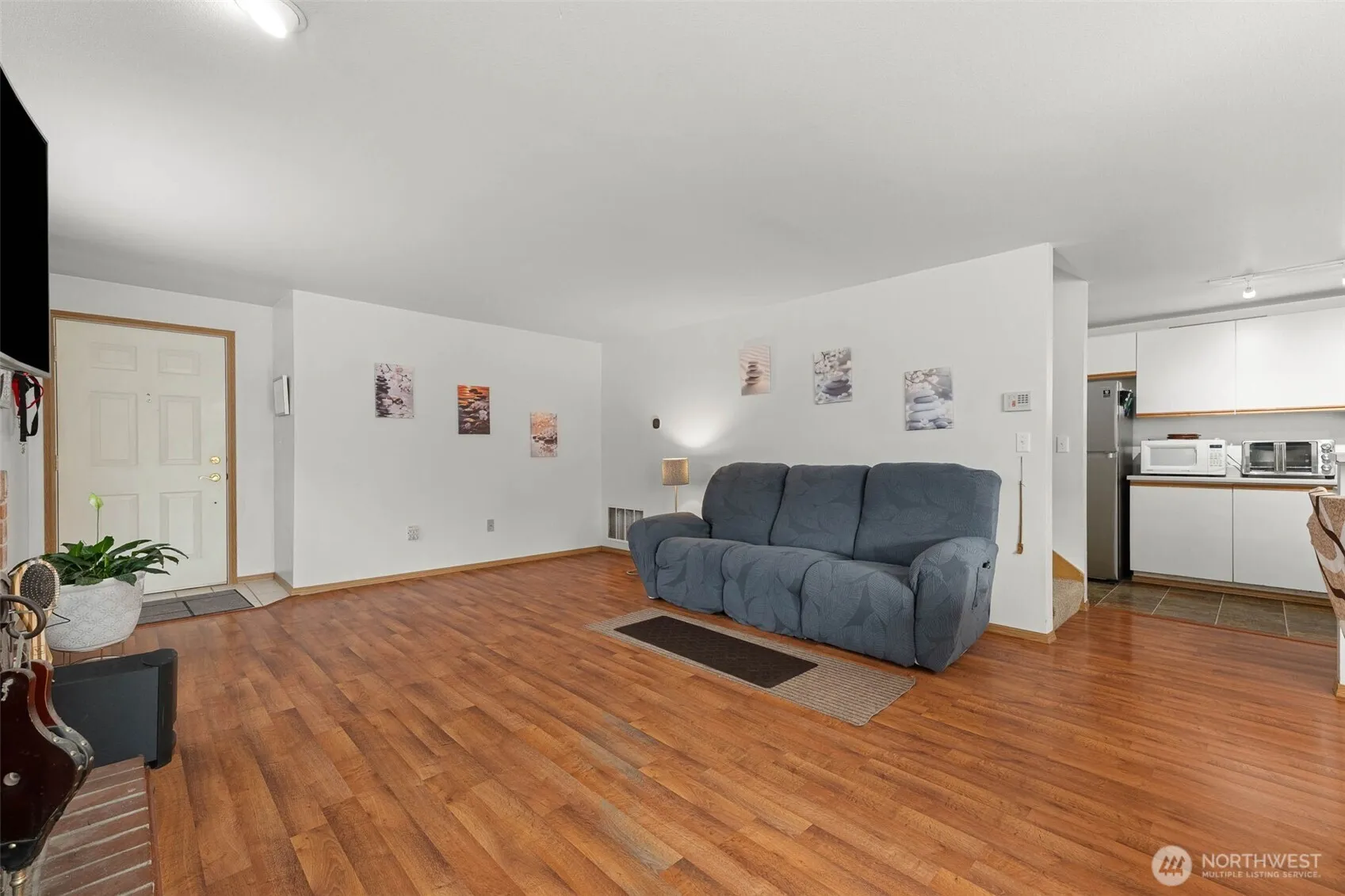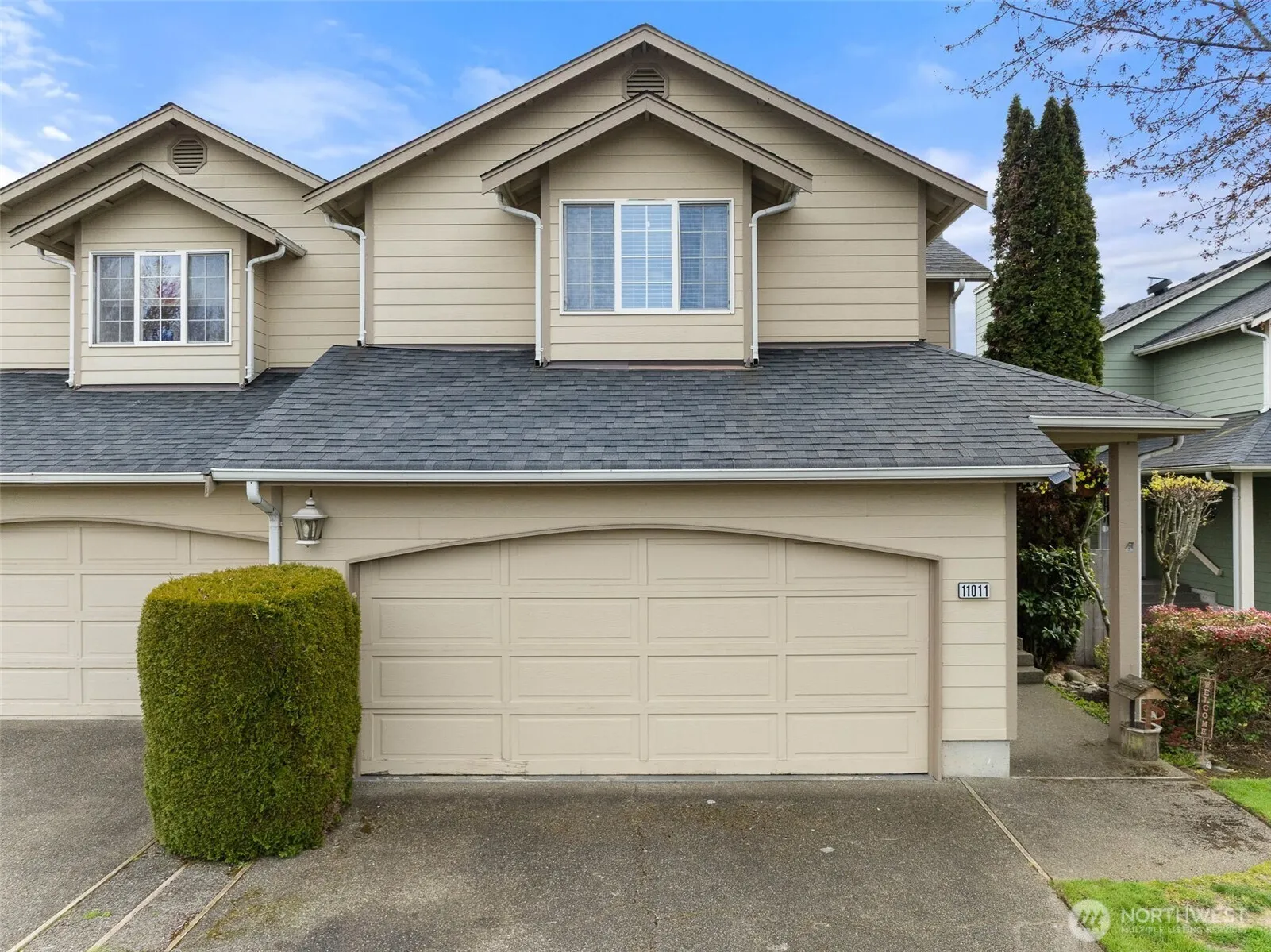 Spacious 3-bedroom, 2-bath townhome in a gated community, ideally located between Puyallup and Tacoma! The main floor features laminate flooring throughout, an open kitchen overlooking the living room with a cozy wood-burning fireplace, and a primary suite with a large bathroom (on the main!). Enjoy the convenience of main floor laundry. Upstairs offers two additional bedrooms and a full bath. Step outside to a large, fully fenced backyard with a hot tub – perfect for relaxing or entertaining. TV in living room stays with home, as well as all appliances. Newer A/C heat pump. Complete with a 2-car garage, community park and close proximity to shopping, freeway access, and JBLM! HOA covers roof, siding, exterior paint, gate maintenance, snow removal, common areas and front yard landscaping – enjoy the low maintenance, stress-free while living in a fantastic neighborhood at an unbeatable price point!