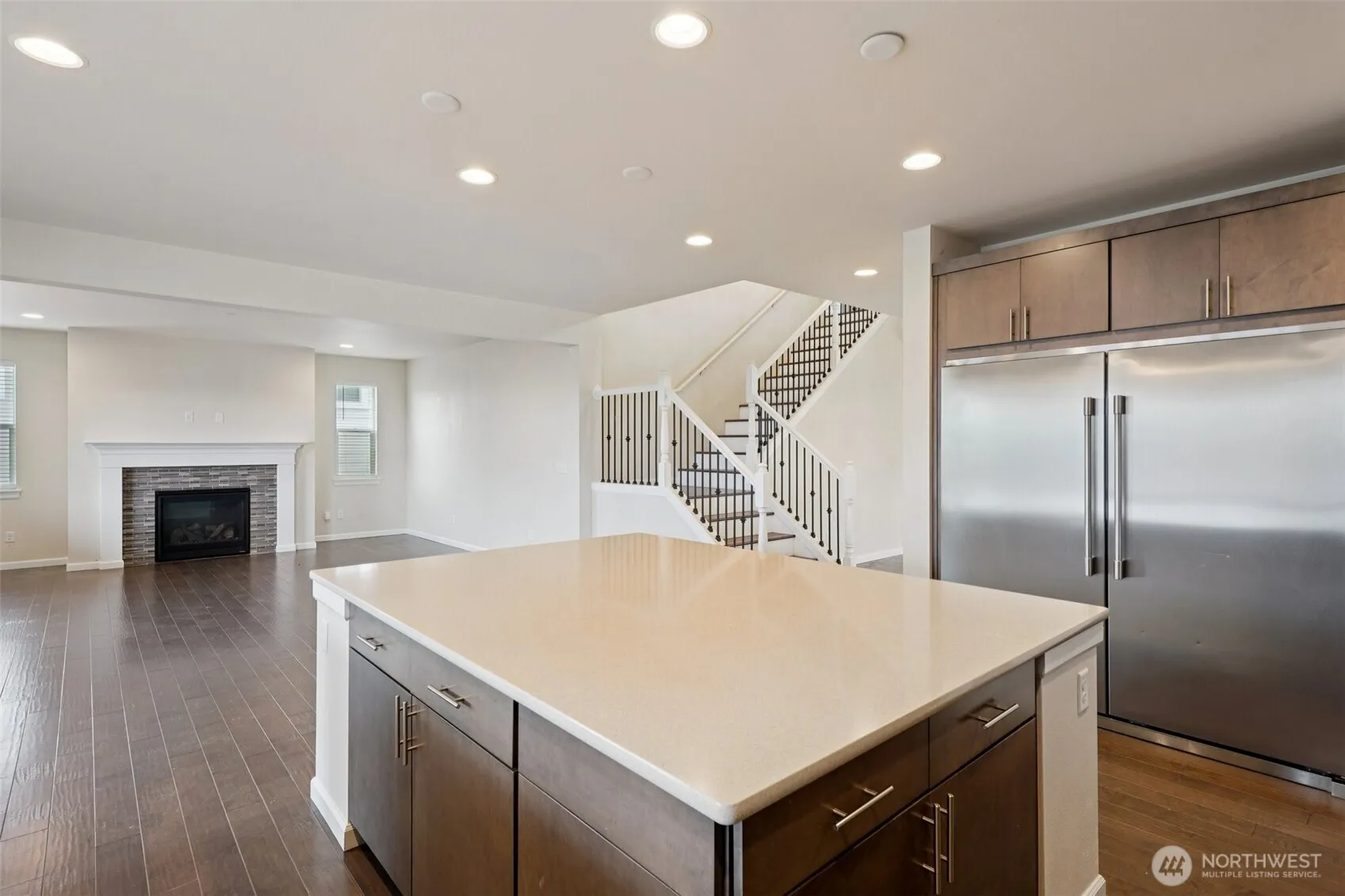Two story with daylight walkout basement and two large covered decks! Main floor offers gourmet kitchen with large island and side by side stainless steel frig/freezer. Large open family room with gas fireplace. Upstairs Owner’s suite offers two walk-in closets, huge walk in shower and soaking tub! Bonus room with 3 additional bedrooms. Walkout basement offers Huge media/rec room space with private guest suite! Fully fenced yard and 3 car garage!