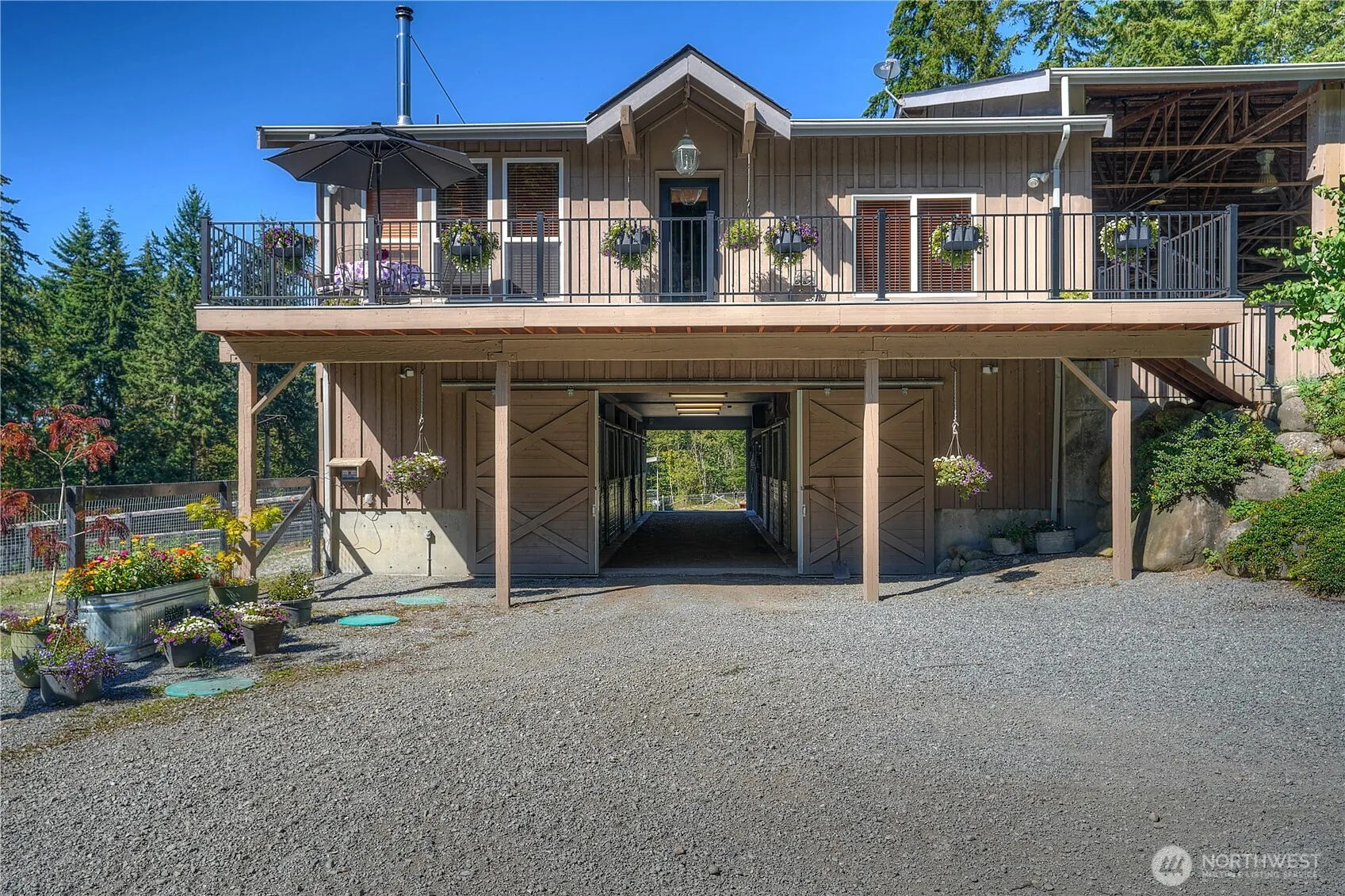 Liberty Farms Sport Horse Company the “ridgetop equestrian oasis”! This unique and private equestrian property setting offers a 7-stall barn with noble panel fronts (5 of the stalls offer direct turn-out), heated tack room, hot/cold wash rack, 120 X 60 covered arena and a 24 X 100 hay barn/equipment/garage – workshop + paddocks/pastures with loafing sheds. This magical 20 acres boasts 15 wooded acres of marketable (50-year) timber, 5 cleared acres, numerous trails throughout, mini extreme obstacle course, raised garden beds, lighted fire pit & loads of parking for horse trailers, farm equipment and so much more! The custom European Style home built above daylight basement barn features a cozy vibe – open concept kitchen to living room with vaulted ceilings, upper end finishes throughout, loft, 2 beds, 2 baths & huge gathering room with unique garage type door opening into covered arena! This distinctive property would also be well suited for a “car- buff” offering loads of room to park vehicles to showcase in the covered arena or a mechanics dream with large shop and plenty of room to park your favorite farm equipment/iron! Truly a special property with so much to offer!