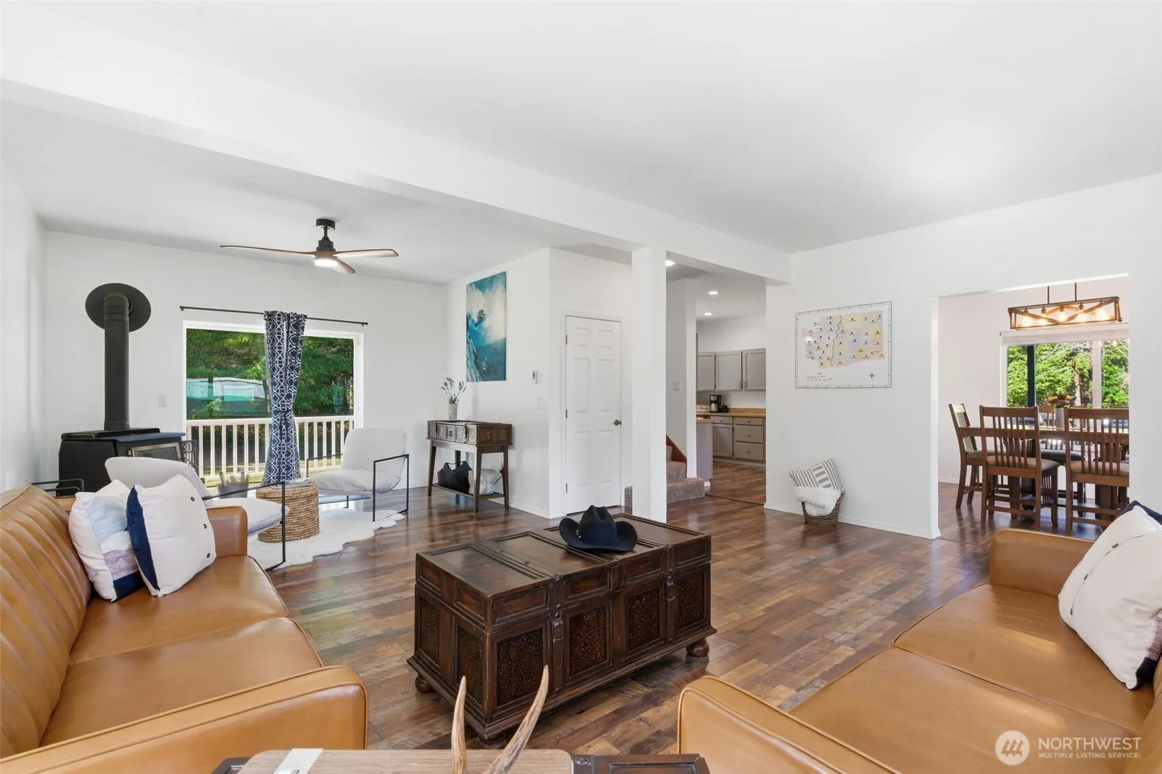 Set on a private road near Tahuya, this level five-acre property offers space, privacy, and direct connection to the outdoors. With over 23,000 acres of state forest adjoining two sides of the property, the setting feels expansive and genuinely secluded. Mornings arrive quietly here as open land stretches out around you and the surrounding forest creates a natural sense of calm. The home sits comfortably in the landscape, well cared for with a thoughtful floor plan that lives easily and feels connected to the surrounding land. Three bedrooms and practical living spaces support the rhythm of country life. A nearly 9,000 sq ft fully built-out barn anchors the property, with a finished interior, dedicated workspaces, and exceptional covered capacity rarely found on acreage of this size. Bring your horses, as the property includes two fully fenced paddocks with room for animals, equipment, and projects. Step beyond the property onto DNR land that unfolds into more than 200 miles of trails for off road vehicles, riding, hiking, and exploring. The combination of working infrastructure, trail access, and surrounding forest creates a setting that is as functional as it is rare: private, capable, and ready for what comes next. The barn currently houses an award winning organic hobby farm. Business opportunity may be available. Please inquire for details. Seller financing available.